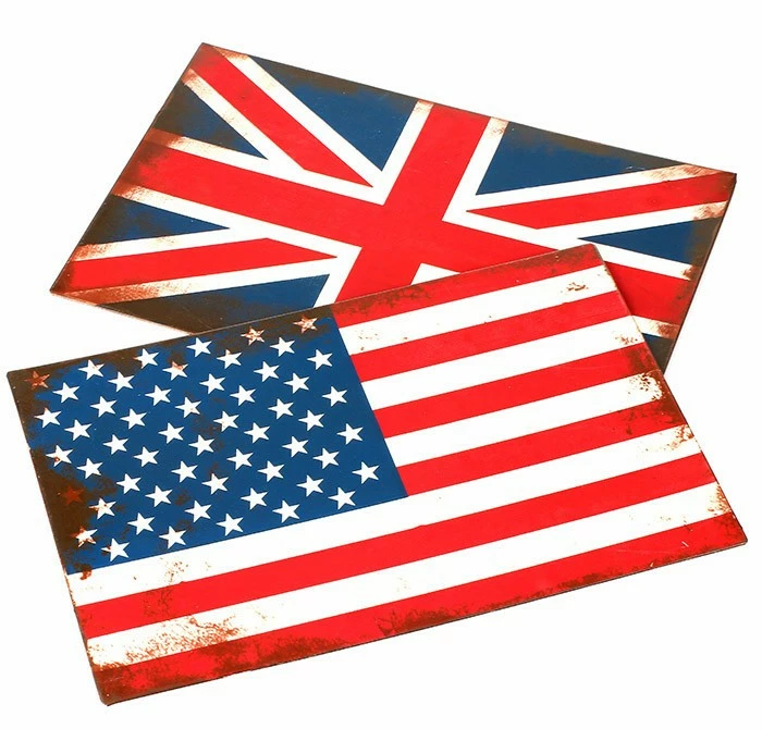 Fan de ? Voici deux plaques en métal au look Vintage pour donner un côté rétro à votre . Deux drapeaux symboles : le et lie , plus connus sous les noms respectifs de « Stars and Stripes » et « Union Jack ».