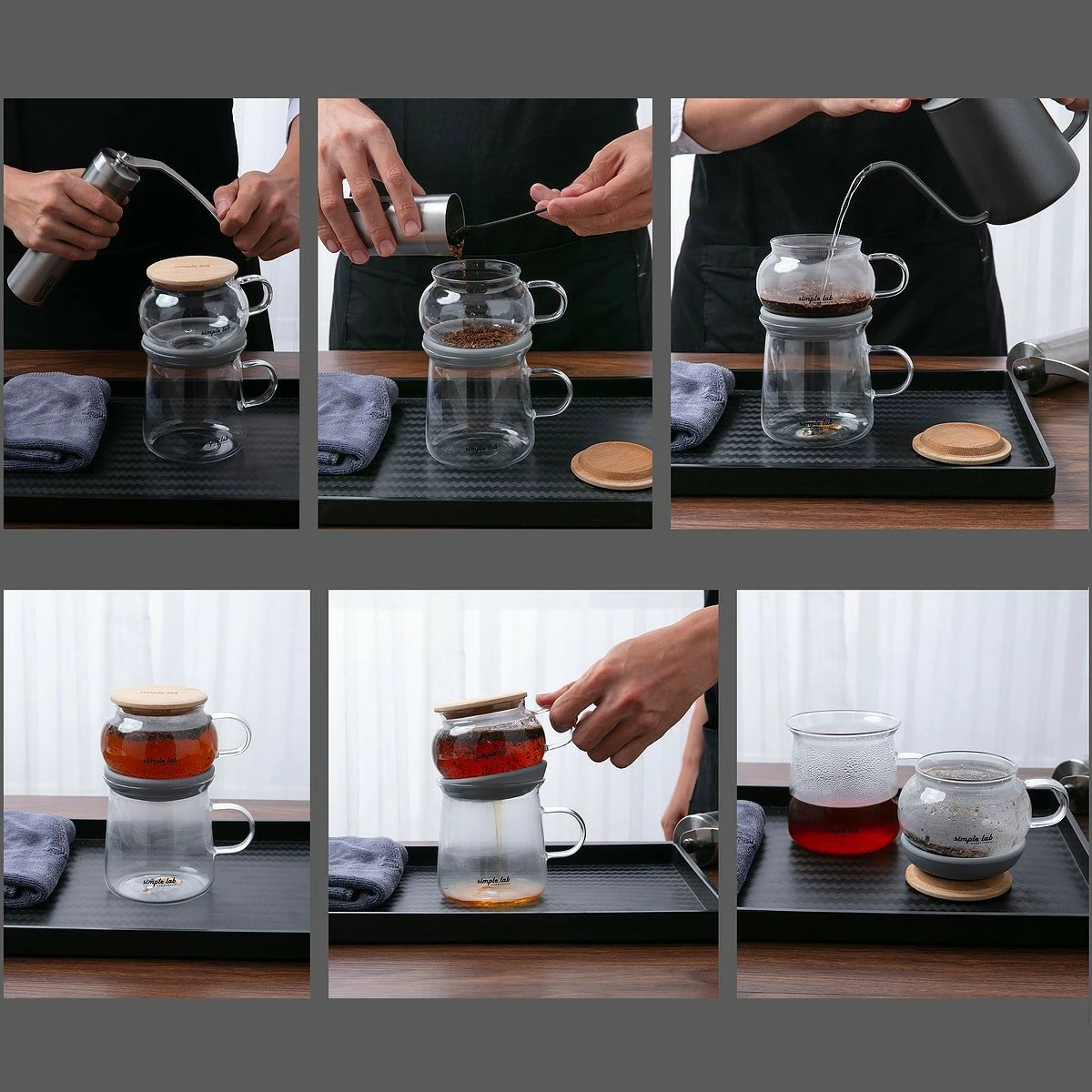 - Comprend la tasse inférieure en tasse en verre x1, l’infuseur supérieur en verre x1, 1 Coussin Silicone (avec filtre) x1, couvercle en bambou x1.