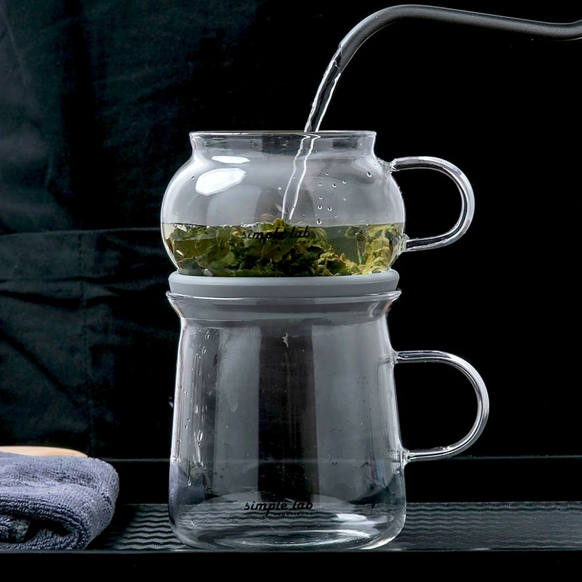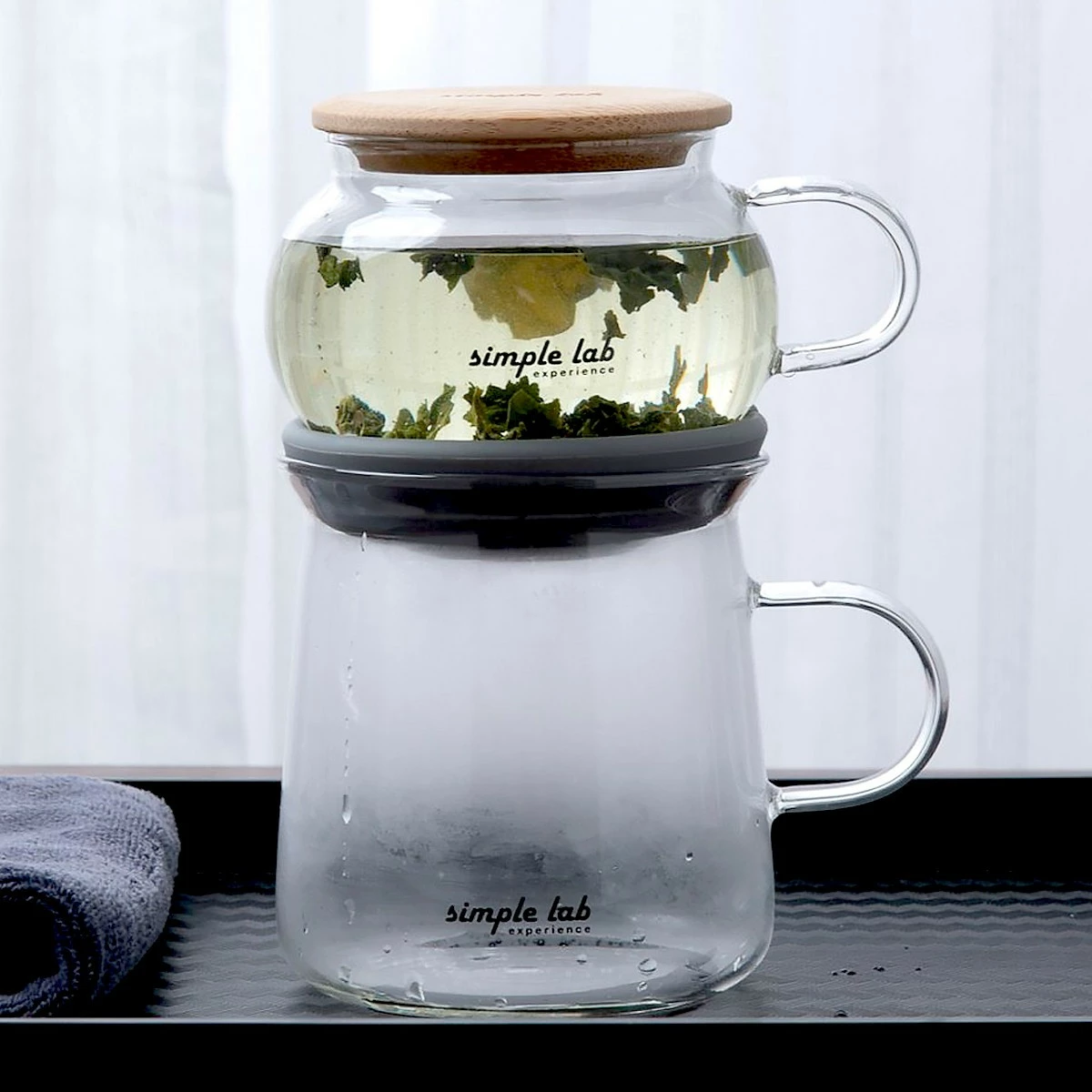 Il suffit de placer l’infuseur supérieur sur le verre inférieur, d’appuyer un peu pour sécuriser le sas d’air, et vous êtes prêt à infuser. Placez votre thé et versez l’eau chaude. Pas d’interrupteur compliqué, ni de mécanisme à ressort, laissez simplement la pression de l’atmosphère faire le travail comme par magie. Une fois le temps d’infusion nécessaire écoulé, soulevez un peu la partie supérieure, le thé prêt à l’emploi s’écoule automatiquement dans le verre inférieur. Posez l’infuseur supérieur sur le couvercle en bambou pour le remplir à nouveau et dégustez votre thé. est une idée cadeau très original pour tous les amateurs de thé.