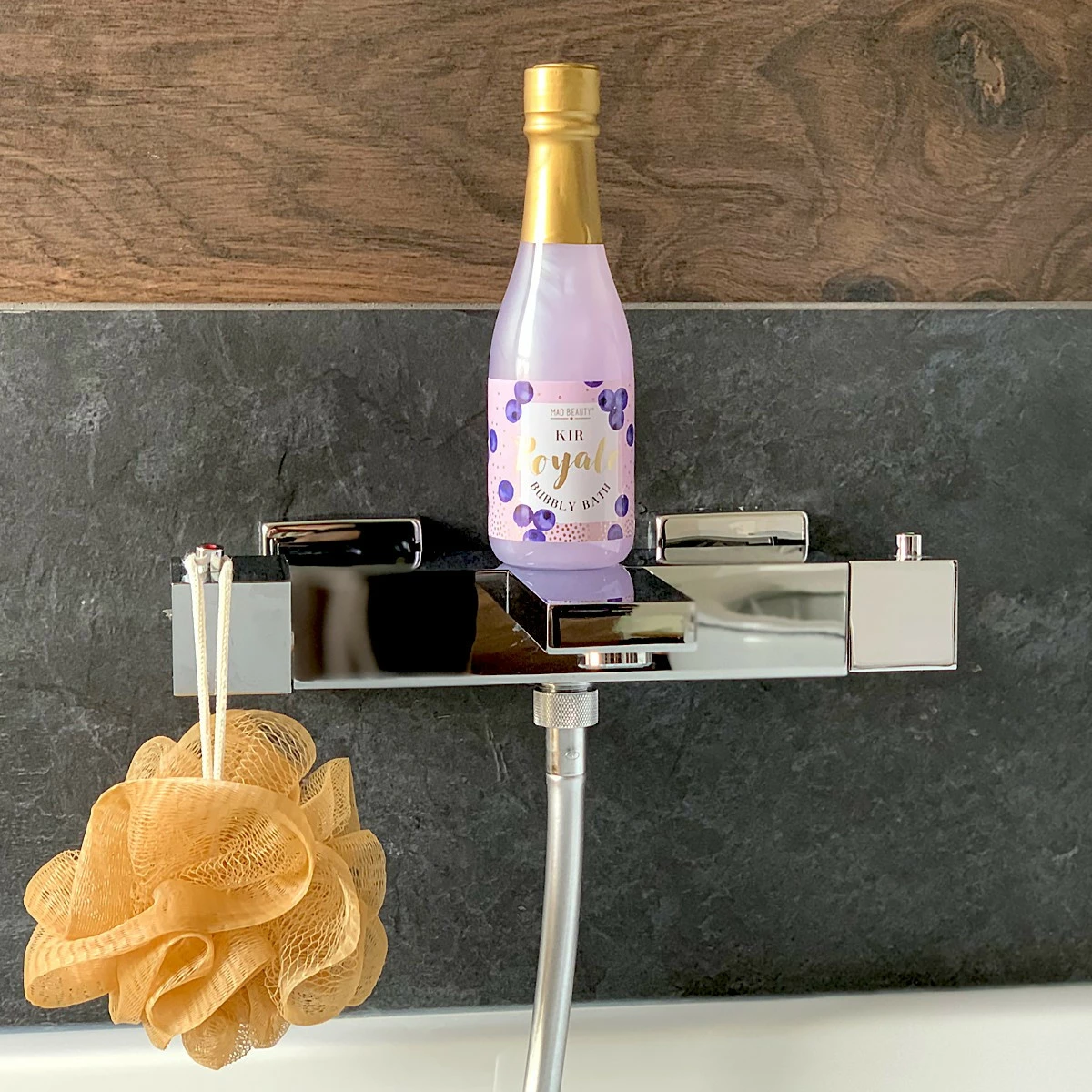 Que les assoiffés rangent leur flûte à Champagne ! le n’est qu’un clin d’oeil à la célèbre boisson dijonnaise à base de crème de cassis et de Crémant de Bourgogne. A cet égard, nous pardonnerons volontiers le « e » en trop sur l’étiquette, nos amis anglais à l’origine de ce délicieux bain moussant original ayant une autre vision du mot « royal ». Cette élégante petite bouteille décorera avantageusement le rebord de votre baignoire entre deux moments de repos dans un bon avec, si le coeur vous en dit, une petite coupette de Kir Royal (la boisson et pas le bain moussant) avec modération bien entendu.
