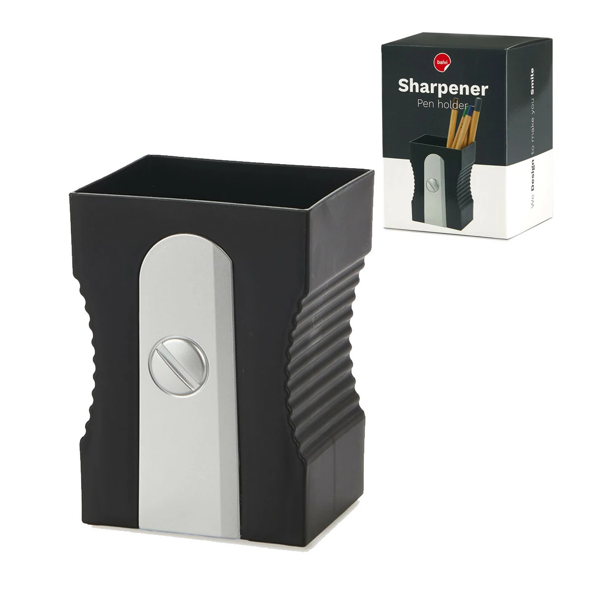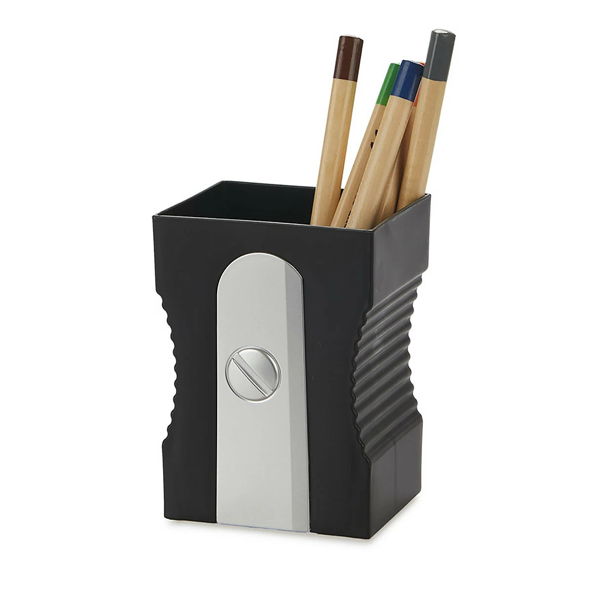 Marre des pots à crayons en forme de banal gobelet ? Ce pot à crayons en forme de taille-crayon géant noir est plus qu’un simple gadget de bureau, c’est un chef-d’œuvre de design (pour peu qu’on soit passionné pas le design des accessoires de bureau) ! Dites adieu au stylos, règles, ciseaux et crayons qui traînent un peu partout à la surface de votre bureau, vous pourrez tous les ranger facilement dans ce pot à crayons taille-crayons.