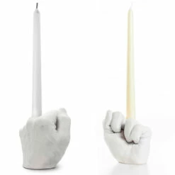 Quitte à allumer une bougie, autant qu’elle ait du style ! si c’est pour ressortir le chandelier désuet de votre grand-mère, non merci ! le est compact et efficace. Placé sur n’importe quelle étagère ou table sans la bougie, il a l’air parfaitement innocent. Il passera juste pour ce qu’il est : une superbe sculpture de poing en polyrésine magnifiquement réalisée. Installez la bougie en lieu et place du doigt majeur et le prend tout son sens. Utilisez-le pour diffuser une agréable lueur d’ambiance en transformant ce doigt magistral en doigt d’honneur à l’obscurité. Votre entourage ne restera certainement pas indifférent à cette jolie réalisation d’art très contemporain, tout dépendra de leur ouverture d’esprit.