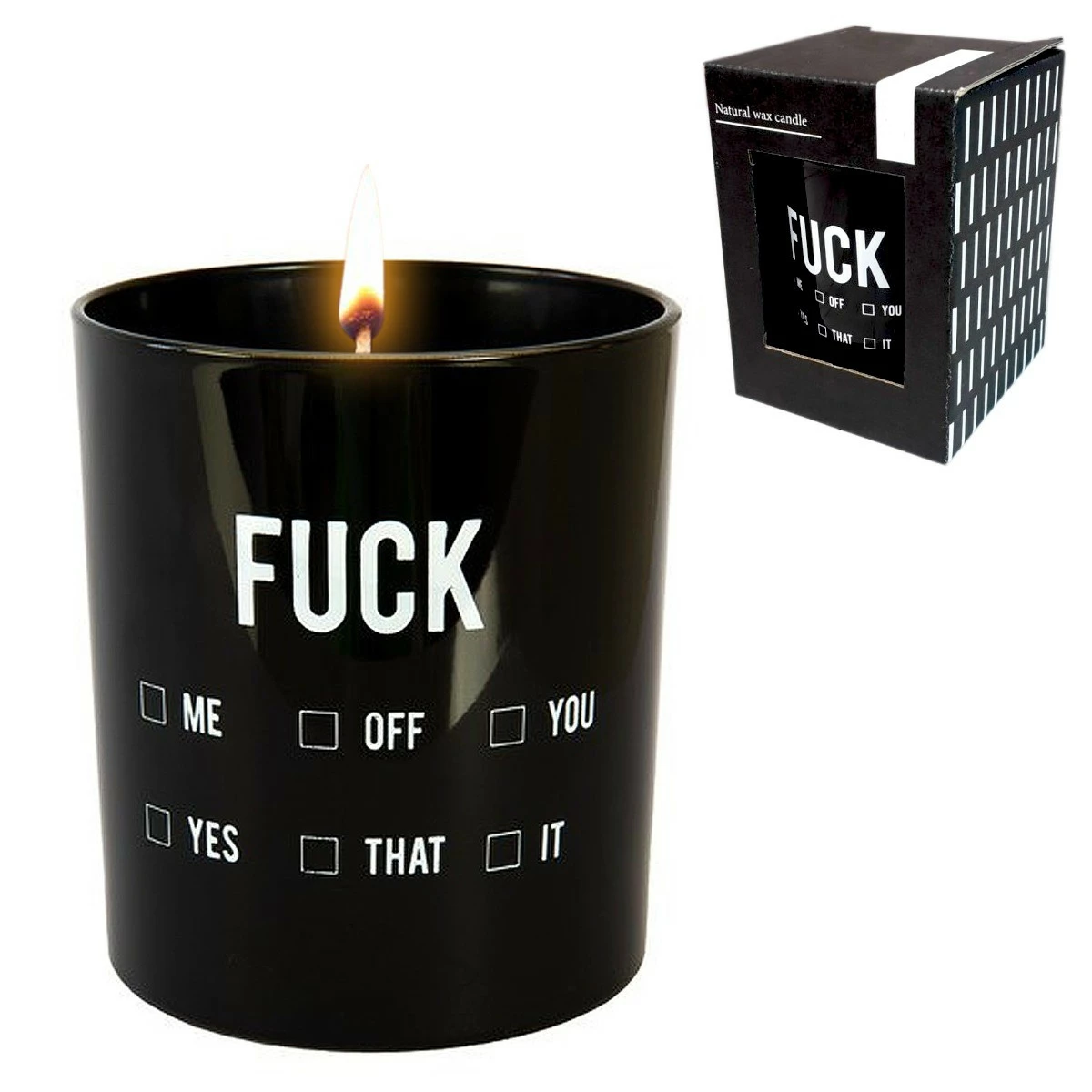 Après une journée diabolique et ultra-négative, allongez-vous pour prendre un peu de recul et allumez la . Concentrez-vous sur la flamme et regardez vos idées noires se consumer et s’évaporer, bien sûr il s’agit d’une image, vous devrez effectuer ce travail sur vous afin de vous relaxer au mieux. Dans son verre noir élégant marqué de la mention « FUCK » avec différentes cases à cocher, la est un excellent support de relaxation. Sa cire naturelle est délicieusement parfumée au jasmin et exhale des senteurs enivrantes dans la pièce où vous la ferez brûler renforçant encore l’effet relaxant. Il ne sera nullement nécessaire de cocher l’une des cases OFF, Me, You… pour tout envoyer balader et vous sentir bien mieux !