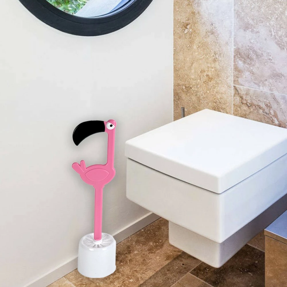 - véritable brosse à toilettes en forme de flamant rose,