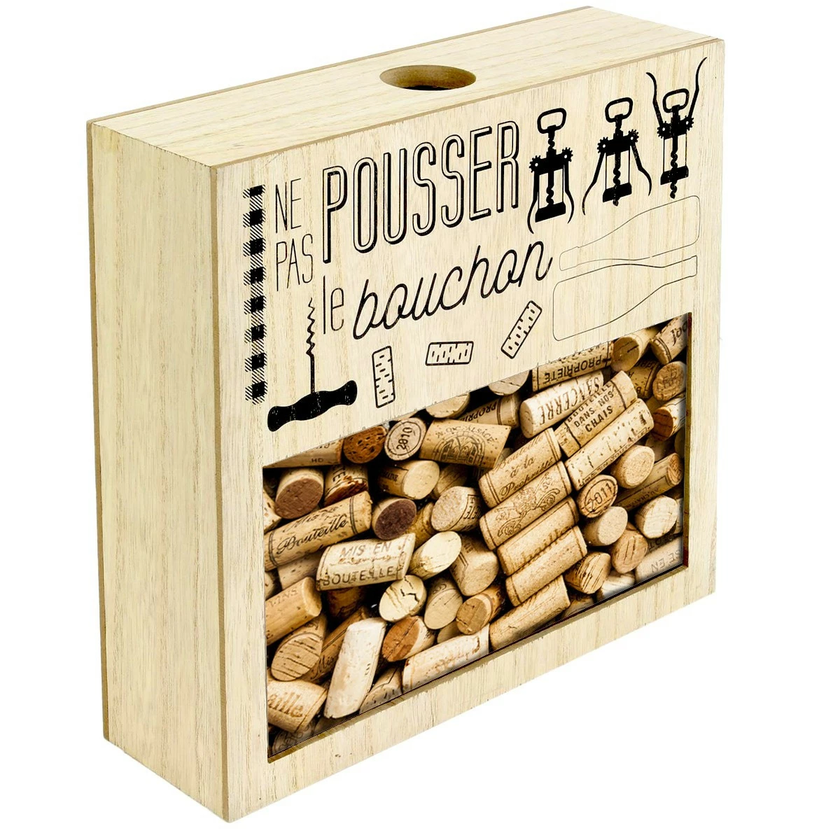 Accrochez le à votre mur à un endroit pratique pour collecter les bouchons des belles bouteilles que vous déboucherez au fil du temps et en fonction de votre soif (avec modération quand même, ce n’est pas une course !). Le compartiment à capsules se remplira laissant apparaître tous les bouchons avec les noms des domaines que vous appréciez le plus : Romanée-Conti ou Mouton Rotschild… (on vous souhaite vraiment de pouvoir déguster de tels vins). Le est réalisé en bois et la vitre peut être coulissée pour vider les bouchons. Les collectionneurs vont être ravis !