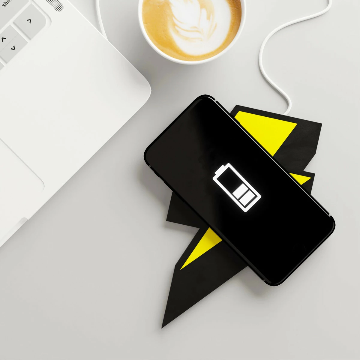 Le vous rendra bien des services au bureau lorsque vous aurez malencontreusement oublié de recharger votre smartphone pendant la nuit. Déposez le simplement sur ce chargeur induction particulièrement original et décoratif en forme d’éclair jaune. Le mettra de la couleur sur votre bureau et de commencer la journée avec cet accessoire incontournable. Raccordé par un unique fil à votre ordinateur par USB, cet chargeur sans fil rechargera votre batterie en un rien de temps par simple contact de votre smartphone.