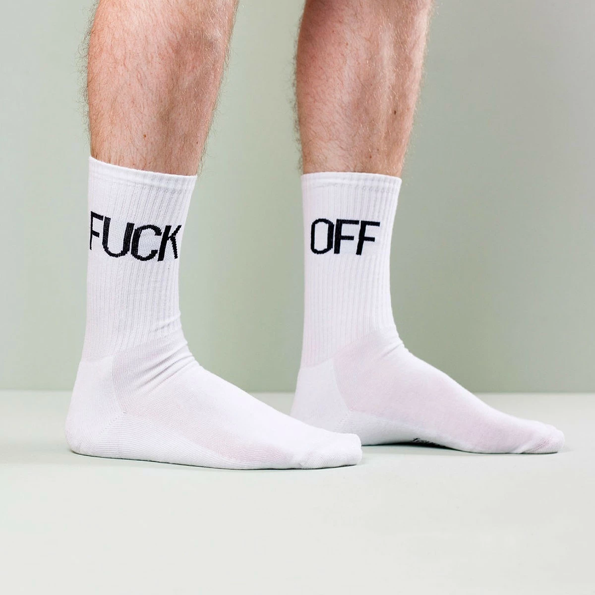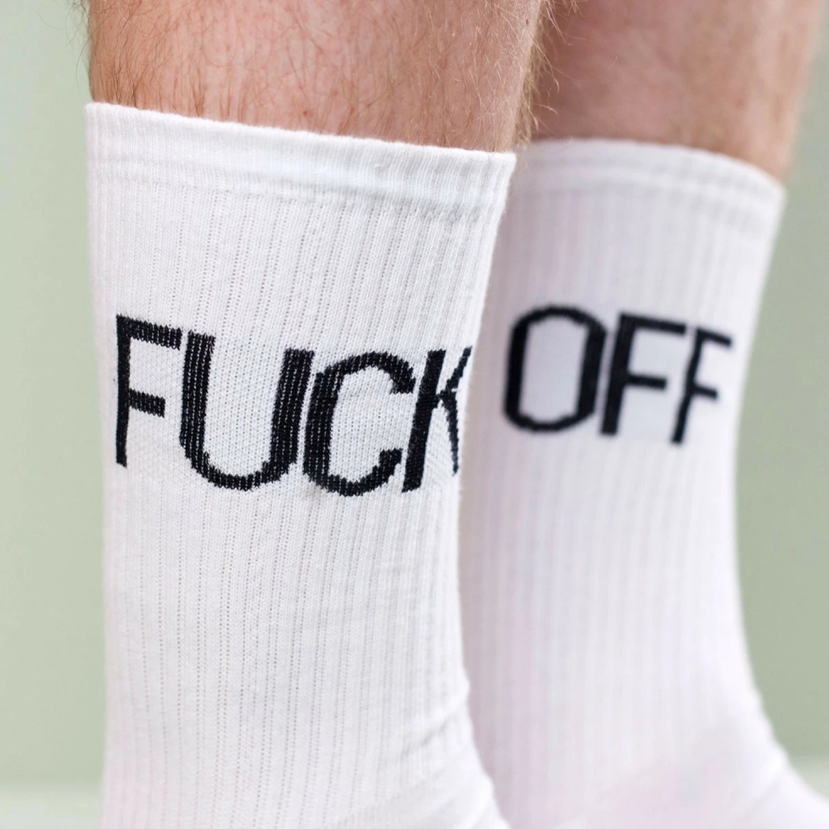 Les sont parfaitement adaptĂ©es aux mauvais jours, ceux au cours desquels vous n’avez pas envie de parler parce que vous ĂŞtes de mauvaise humeur. Quelqu’un heurte votre susceptibilitĂ© Ă fleur de peau ? levez vos jambes de pantalon et faites-lui lire vos chaussettes sans piper mots. Il y a fort Ă parier que votre interlocuteur comprenne le message. Confortables et Ă©paisses comme des chaussettes de sport ces chaussettes blanches comportent pour l’une l’inscription « Fuck » et pour l’autre « Off ». Un Ă offrir Ă quelqu’un qui est particulièrement grognon ou râleur… comme vous, en fait.