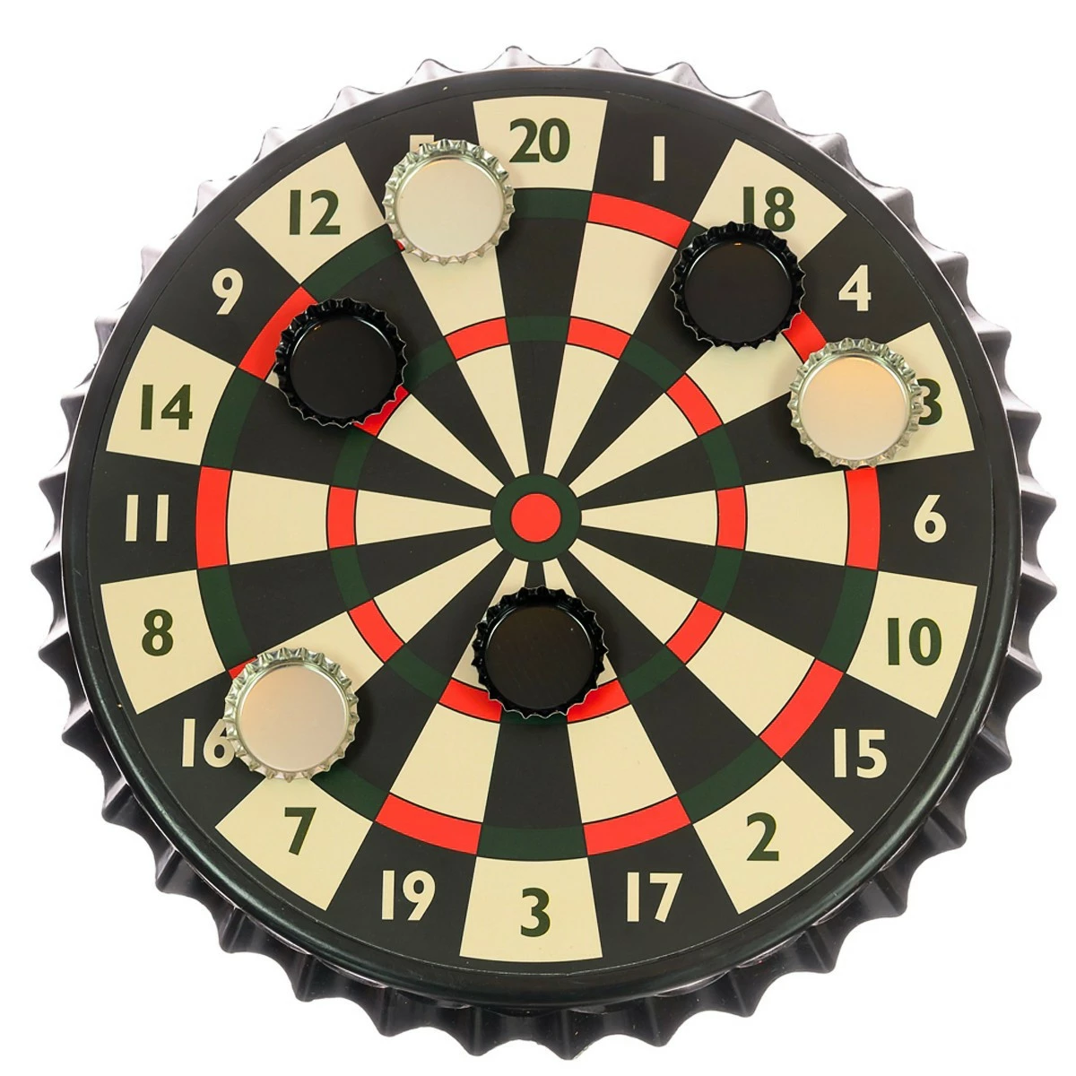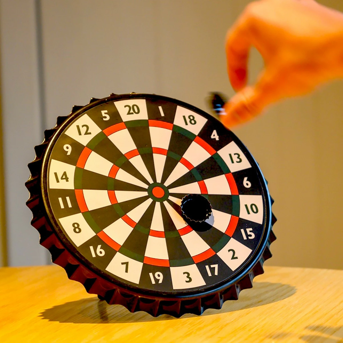 Inspiré du jeu de fléchettes, la est un must absolu pour les apéros et soirées entre amis sans risque de « s’empaler » les doigts avec les fléchettes. Débouchez votre soda ou votre bière et utilisez la capsule pour marquer des points en la projetant sur la . La cible est en forme de capsule géante et mesure environ 40 centimètres de diamètre. Comme sur un jeu de fléchettes traditionnel, la cible est divisée en plusieurs zones permettant de marquer plus ou moins de points. La est un cadeau amusant et décoratif, parfait pour les amateur de fléchettes (et/ou de bière).