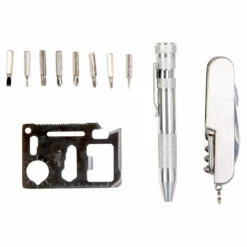 - Comprend une carte multi-outils 10 en 1, un tournevis avec 8 embouts et un couteau multi-fonctions en acier inoxydable