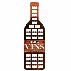 Accrochez cette bouteille géante à votre mur à un endroit pratique pour collecter les bouchons des belles bouteilles que vous déboucherez au fil du temps et en fonction de votre soif (avec modération quand même, ce n’est pas une course !). Cette grande bouteille comporte 28 cavités destinées à recevoir des bouchons. Il vous suffira d’insérer dans les cavités tous les bouchons avec les noms des domaines que vous appréciez le plus : Romanée-Conti ou Mouton Rotschild… (on vous souhaite vraiment de pouvoir déguster de tels vins). Le est réalisé en bois, c’est un cadeau particulièrement original pour les passionnés de grands-crus ! et d’ailleurs la mention « Bar à vins, mieux vaut le vin d’ici que l’eau de là ! » ne sera pas pour leur déplaire.