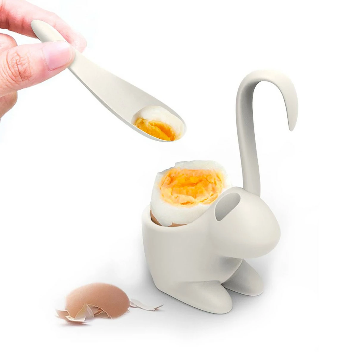 Le , lui, possèdent deux belles oreilles ! L’une se détache et sert de cuillère pour déguster votre oeuf avec simplicité, l’autre est recourbée et vous permet de saisir facilement le pour le déplacer ou le ranger en l’accrochant par exemple ! malin non ?