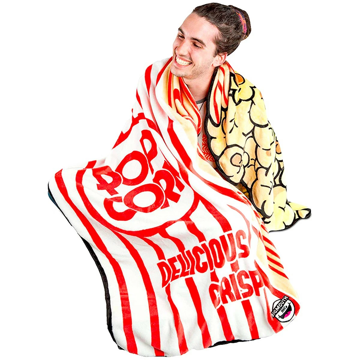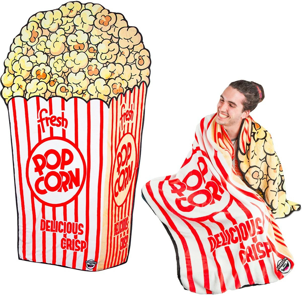 La est une couverture dédiée aux soirées séries ou ciné mais elle est aussi parfaite pour vous couvrir pendant une petite sieste ! Peu importe que vous préfériez votre pop-corn salé ou sucré, la vous gardera bien au chaud pour votre marathon ciné, TV, Netflix… Son design amusant représente un énorme cornet de popcorn. 1,5 m de long et très douce, sa structure est en polaire bien douillette. On adore !