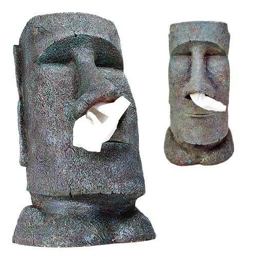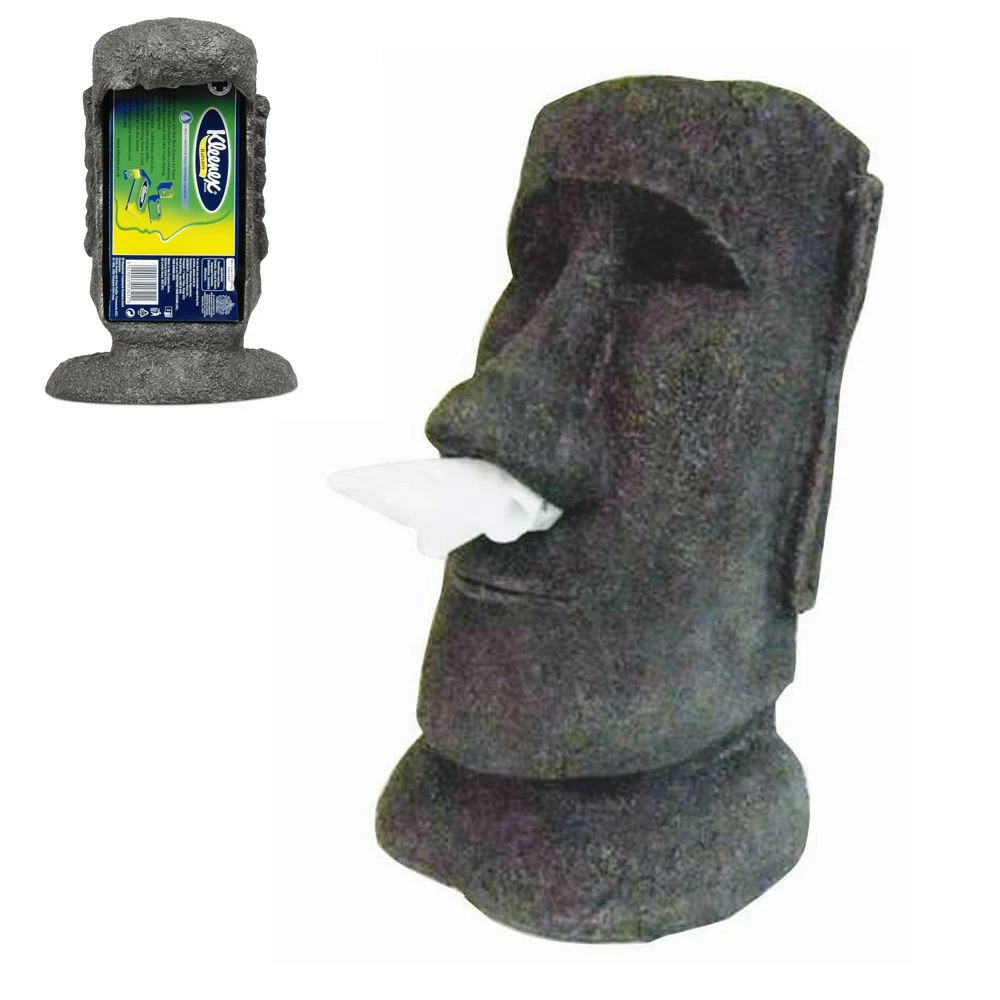 MĂŞme s’il est vrai que les fabricants de mouchoirs en papier ont fait des progrès considĂ©rables quant au design de leurs boĂ®tes ces dernières annĂ©es, force est de constater que la boĂ®te en carton n’est pas vraiment du meilleur effet dĂ©coratif. Apportez un souffle nouveau avec le directement inspirĂ© des cĂ©lèbres statues monumentales de l’Ă®le de Pâques. Certes, la statuette en rĂ©sine n’est qu’une miniature, mais que feriez-vous d’une statue monolithique de 9 mètres de haut et de 14 tonnes ?