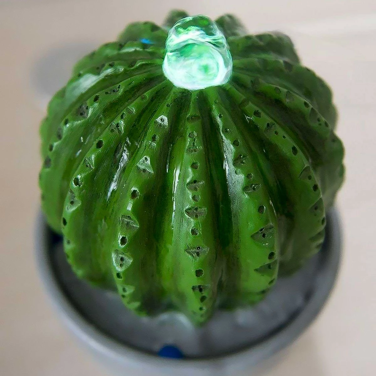 Directement inspirée de la plante d’intérieur Cactus, la en imite l’aspect et apporte une touche décorative à votre logement même si vous n’activez pas la fontaine. Une fois la fontaine activée, l’eau ruissellera doucement par le haut du cactus et s’écoulera le long des cannelures de la plante. Une led à changement de couleur progressif diffuse une douce lueur colorée au sommet du cactus. Equipée d’une pompe discrète, vous serez bercé par le doux clapotis de l’écoulement de l’eau ! Un dont vous allez raffoler.