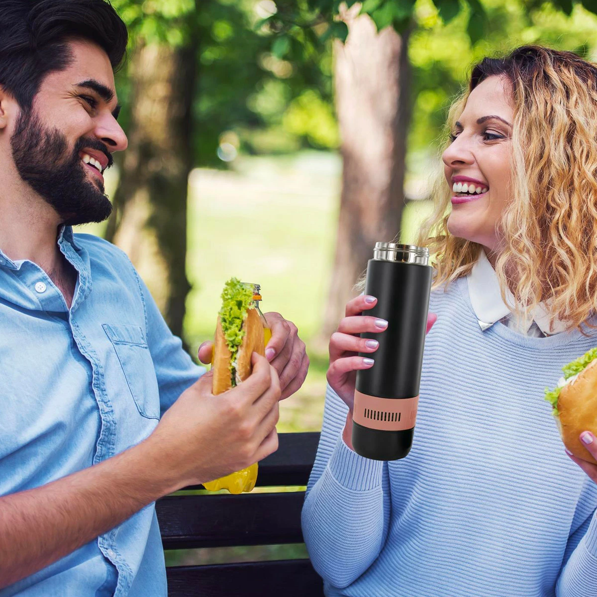 - Nomade et pratique, cette bouteille de transport est connectée ! Elle se dévisse : sa partie basse est une enceinte Bluetooth.