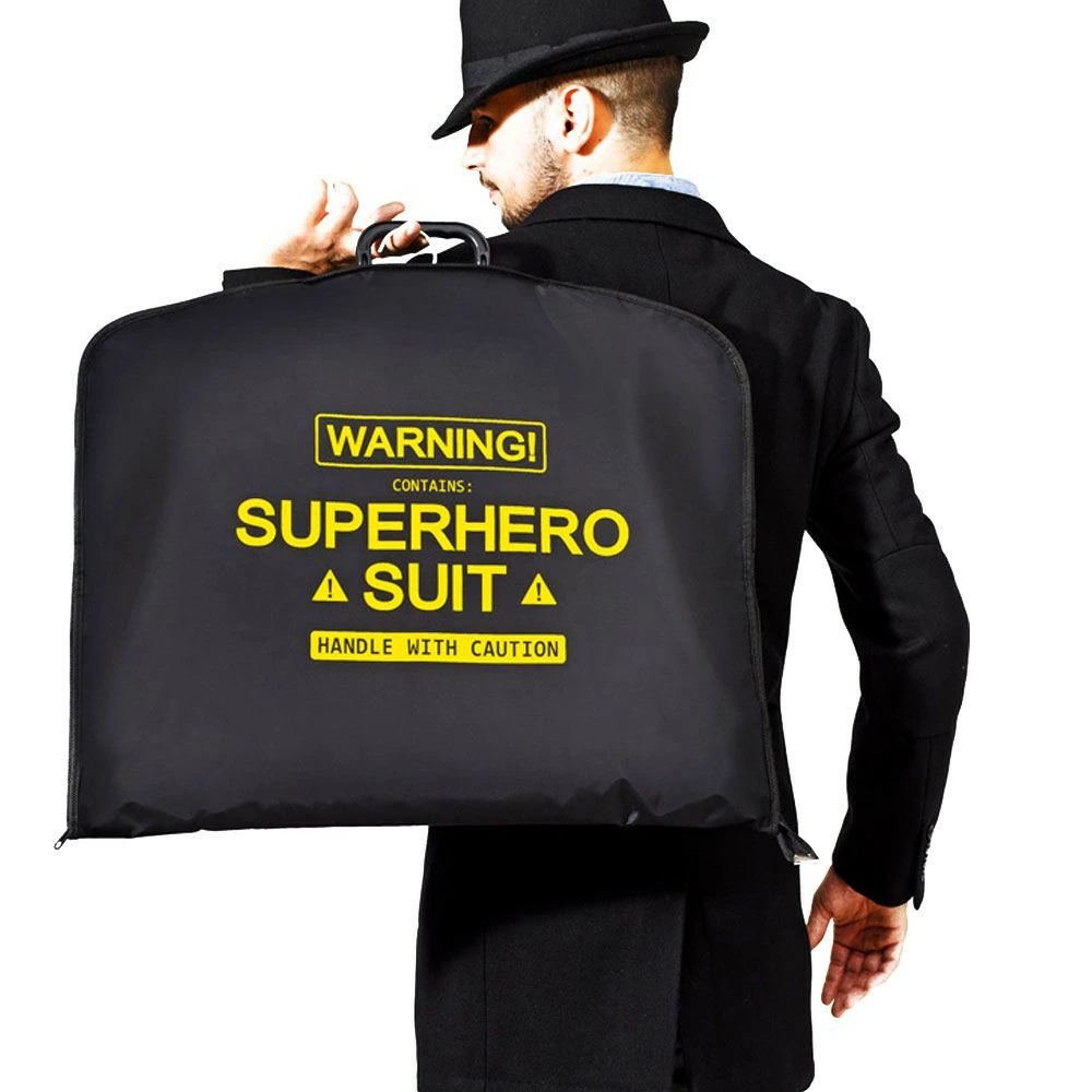 Pour transporter et protéger votre plus beau costume, nous vous conseillons cette housse de voyage « pour super héros ». Une doublure intérieure protège le costume contre les salissures et les mauvais plis. La housse de voyage pour super héros possède une petite touche humoristique indiquant qu’il s’agit d’une housse pour un costume de Super Héros ! Objet indispensable pour tous les super héros voyageurs qui souhaitent arriver à leur rendez-vous extérieur sans aucun accros !