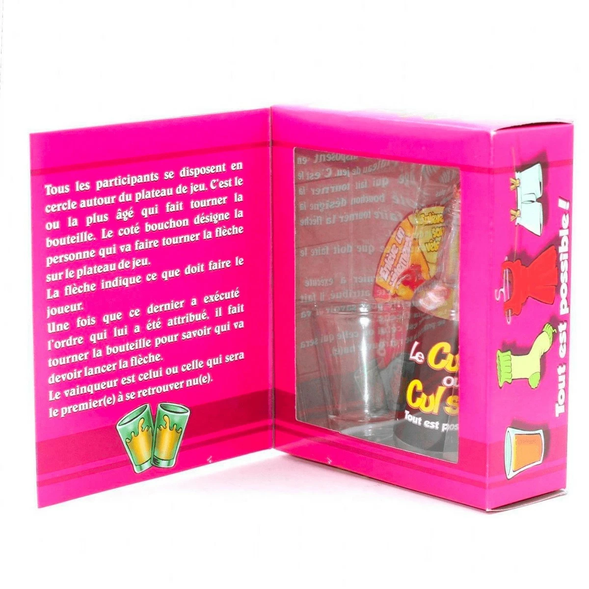 Ce jeu Ă boire risque de mettre une sacrĂ©e ambiance de rigolade pendant une soirĂ©e entre amis. Se jouant au minimum Ă deux ou Ă bien plus, il suffit Ă tous les joueurs de se rĂ©unir en cercle autour du plateau de jeu. Double hasard ! pour Ă©viter les tricheries : c’est Ă la personne la plus âgĂ©e de faire tourner la bouteille, le bouchon dĂ©signe la personne qui fera tourner la flèche sur le plateau de jeu. La flèche indiquera alors le gage que devra exĂ©cuter le joueur : enlève une chaussette, bois le verre cul-sec, choisis qui enlève quoi, rhabille-toi… etc. Une fois que l’action aura Ă©tĂ© effectuĂ©e, le joueur fait tourner la bouteille pour dĂ©signer le joueur qui devra faire tourner la flèche. Le joueur vainqueur celui qui se retrouve nu le premier. Avec le , tout est possible !