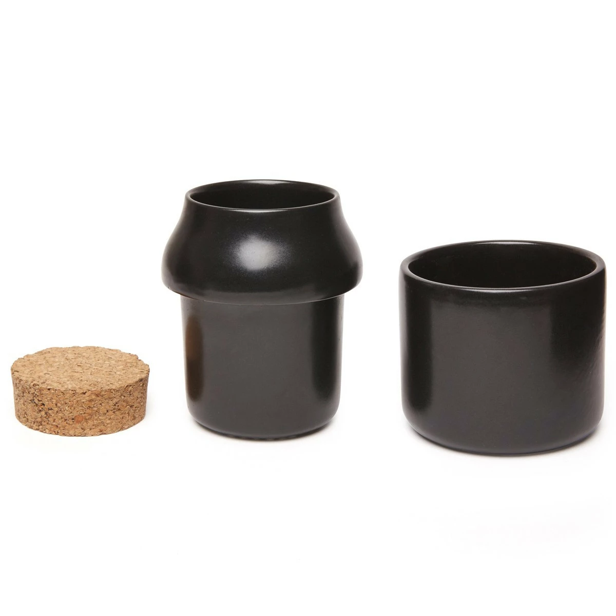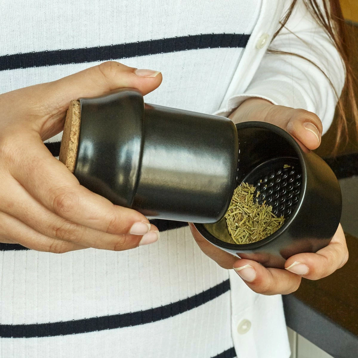 Intégralement en céramique avec un bouchon en liège, le vous permettent de stocker vos aromates à l’abri de l’air et de la lumière de manière la plus hermétique qui soit. Versez un peu d’aromates dans la partie inférieure et mixez en un tour de main. Les herbes seront légèrement broyées, libérant tous leurs arômes et vous permettant de sublimer vos préparations culinaires.