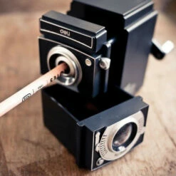 Voici l’un des plus beau taille-crayon au monde ! Le Taille-Crayons appareil photo ancien est un concentré de choses extraordinaires : son look est renversant de réalisme, on jurerait un vrai vieil appareil photo, il possède une manivelle pour tailler le crayon (comme celle que l’on utilisait pour remonter le mécanisme des appareils photo).