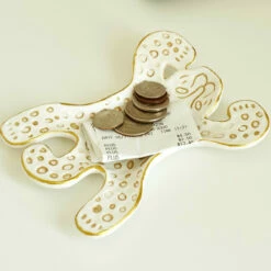 Le est une soucoupe décorative et pratique en forme de peau de léopard. Disposez cet accessoire de décoration dans votre entrée, votre bureau ou votre salle de bains ou à tout autre endroit ou vous avez l’habitude de vous séparer du contenu des poches de vos vêtements. Vos petites affaires ainsi rassemblées dans ce « félin de table » ne nuiront pas à la décoration de votre logement !