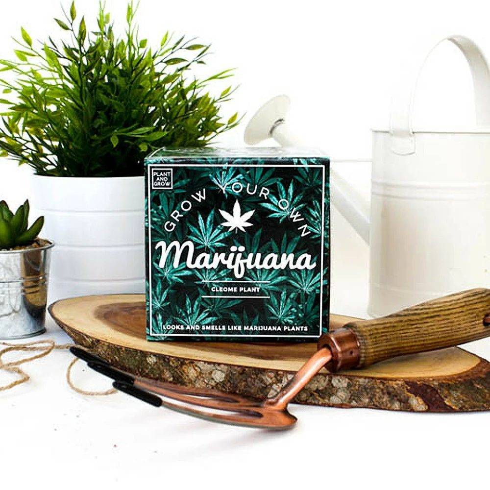 Stop ! messieurs « des douanes » et des « stup' » qui lisez ces quelques lignes, cessez de saliver, tout est légal ! Quant à vous, « jeunes botanistes » à la bouche pâteuse, même si nous sommes « crazy » nous ne sommes pas irresponsables. Le ne comprend bien évidemment pas de Marijuana mais tout le nécessaire pour faire pousser une plante jumelle dénommée Cléome et dont les feuilles palmées très ressemblantes peuvent susciter la curiosité d’un « connaisseur ». On connaît tous qui ne supporte pas qu’on puisse sortir de la légalité ou encore des voisins un peu stressés et qui apprécient modérément votre décontraction naturelle. Le contient 2 sachets de graines de Cléome, 4 pots d’incubation biodégradables, 4 disques de compost et des marqueurs en bois. Placez un disque de compost dans l’un des pots, imbibez d’eau et semez quelques graines. Maintenez humide et exposé à la lumière dans une température ambiante correcte et vous obtiendrez en quelques semaines un superbe pied de Cana… Cléome ! transférez-le en pleine terre, dans un pot ou une jardinière et exposez votre création botanique, sur votre bord de fenêtres ou sur votre bureau (au boulot). Votre entourage devrait rapidement scruter nerveusement cette belle plante.