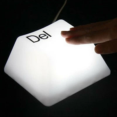 Reproduction fidèle d’une touche de clavier, la lampe led geek touche DEL en « jette » sur votre bureau !