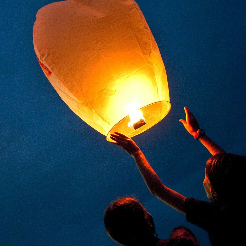 Très simples d’utilisation, les lanternes volantes offrent un spectacle magique et une ambiance féérique. Il suffit d’allumer le combustible placé à son embase centrale, et de la même manière qu’une montgolfière, la lanterne décolle et s’envole lentement avec grâce et légèreté en brillant dans le ciel. Inutile de vous préoccuper des résidus, la lanterne volante est 100% biodégradable ! A utiliser entre amis ou en famille et plus il y a de lanternes et plus le spectacle est féérique !