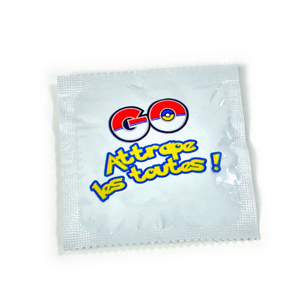 - Vendu en lot de 3 préservatifs : Love Bonus pour Mario, On s’emboîte pour Tétris, GO Attrape les toutes.