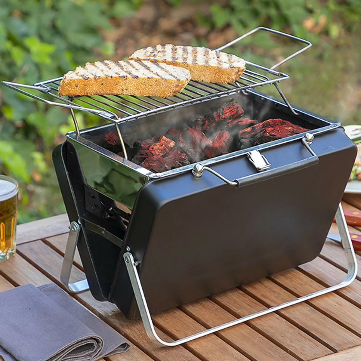 Avec son look de valisette, vous pourriez aisĂ©ment passer pour un commercial en pleine prospection mais il n’en est rien. Cette  est en mĂ©tal et renferme un et Ă utiliser oĂą bon vous semble. Au parc, Ă la plage, sur votre balcon, dans le dĂ©sert, au bord d’une rivière ou d’un lac ou en forĂŞt, les occasions ne manquent pas pour passer de bons moments entre amis ou en famille et . Barbecue Ă charbon complet, pliable et portable, il est donc peu encombrant et sa grille repliable permet d’accĂ©der facilement au compartiment Ă charbon et de retirer les aliments. Vous pouvez Ă©galement soulever la grille ou l’abaisser pour rĂ©gler la tempĂ©rature. C’est un moyen simple et rapide de faire cuire vos poissons, viandes, lĂ©gumes et de partager des moments inoubliables avec vos amis et vos proches. A vous les gambas, brochettes, cĂ´tes de boeuf, poivrons grillĂ©s et autres cuissons en papillotes avec vos proches pendant de belles journĂ©es ensoleillĂ©es !  !Â