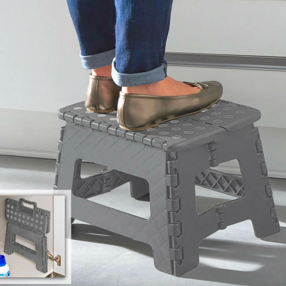 Lorsqu’il est pliĂ©, son encombrement est minime et il ne fait pas plus de 5 cm d’Ă©paisseur. Pour le dĂ©plier, il suffit d’un geste rapide pour obtenir un super rĂ©sistant jusqu’Ă 150 kgs. Ranger, nettoyer, bricoler en toute sĂ©curitĂ© grâce Ă ces pieds caoutchouc et sa surface antidĂ©rapante !