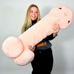 est un coussin long et très doux d’une dimension respectable d’un mètre de long. Certes, il a une forme de pénis mais il est mignon ! son visage souriant adorable vous charmera par son expression angélique et ses pommettes roses. Mega Popol est moelleux et confortable (la raideur n’est vraiment pas son fort) et sera votre meilleur allié pour une sieste reposante enlacé(e) autour de son « corps » aux dimensions généreuses ou la tête bien calée confortablement sur ses testicules imposantes comme des melons. Un cadeau amusant qui provoquera des éclats de rire (ou pas).