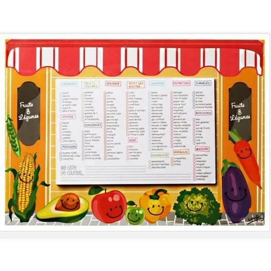 - Support magnétique avec 52 feuillets de liste de courses pré-remplies.