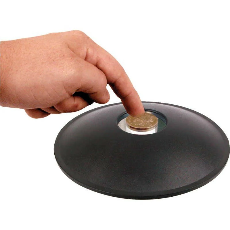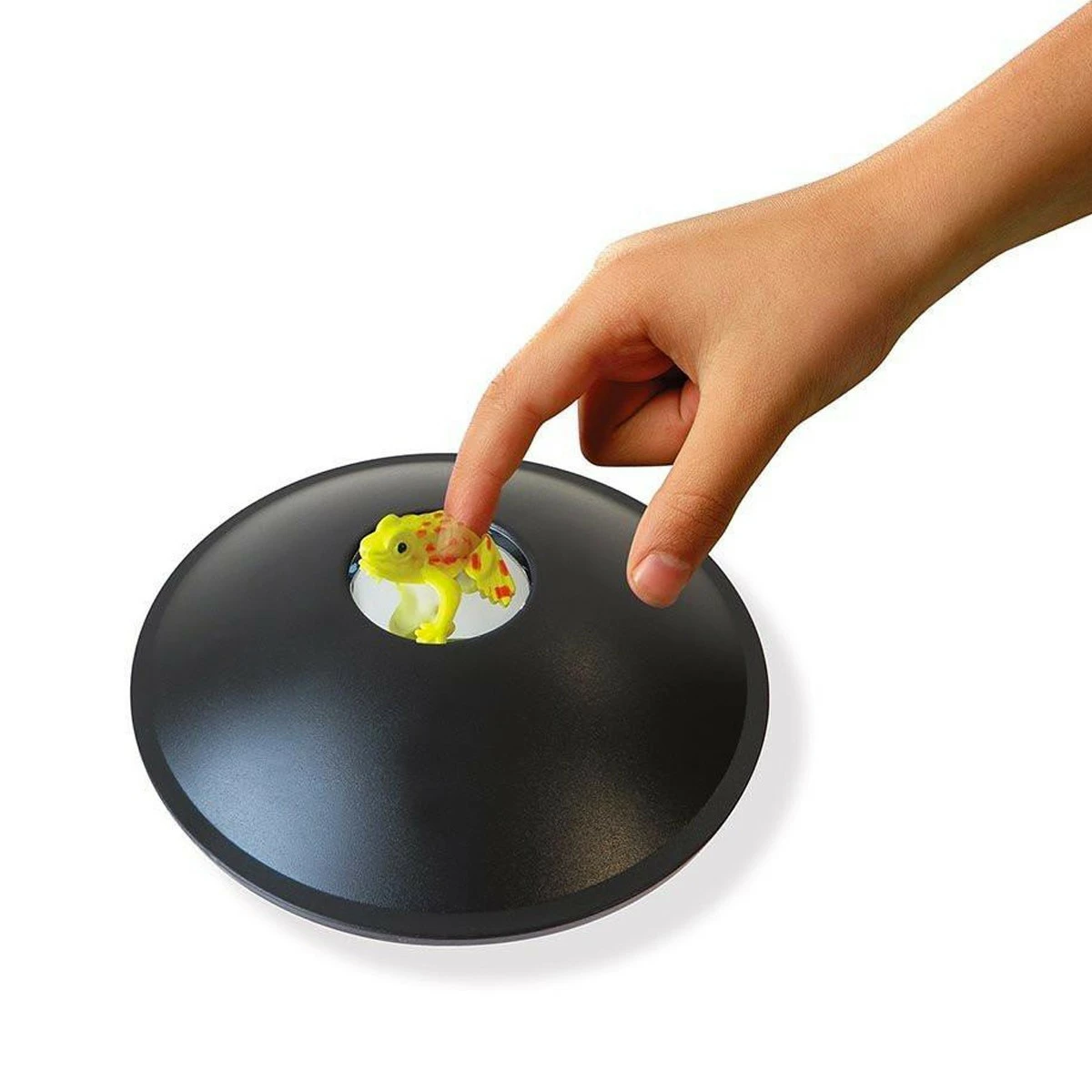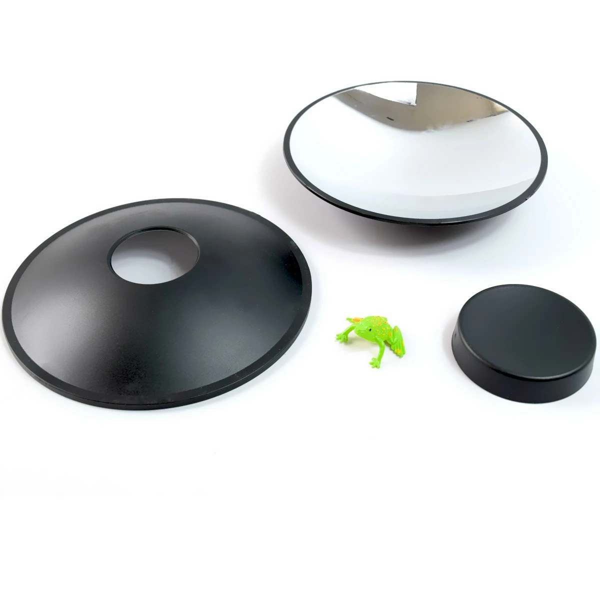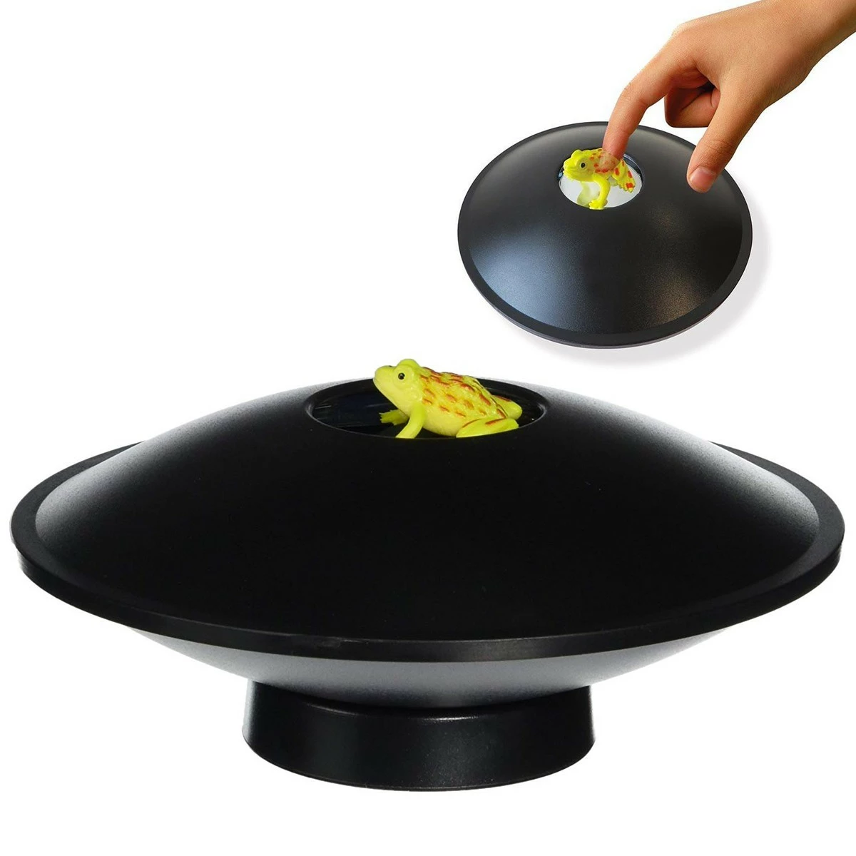 Le est un objet astucieux décomposé en deux miroirs paraboliques qui permettent de créer des hologrammes en 3D. Tout objet d’une taille convenable placé à l’intérieur de la base semblera flotter dans les airs au dessus du comme s’il lévitait. Vu sous le bon angle, l’illusion est tellement incroyable que vous serez irrésistiblement contraint de toucher l’objet en question… mais à votre plus grande stupéfaction vous ne pourrez pas le saisir et votre doigt passera au travers ! absolument bluffant ! Le secret : 2 miroirs paraboliques superposés.
