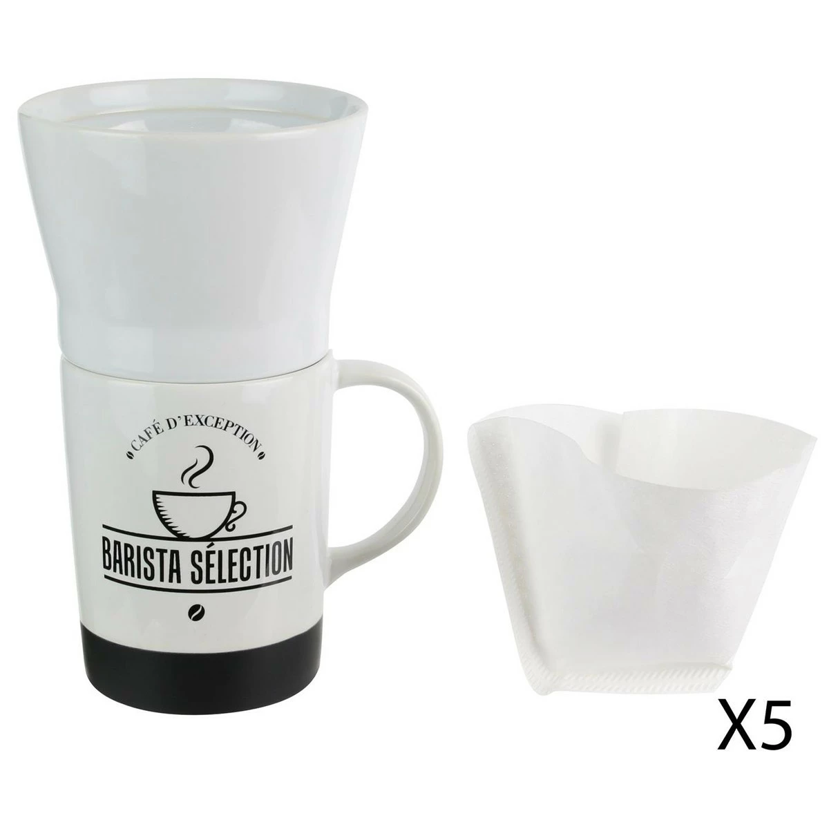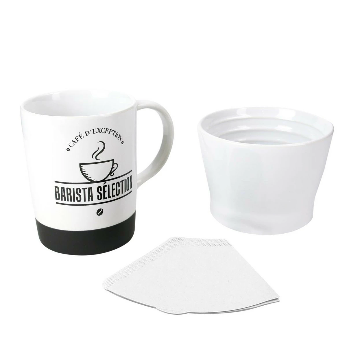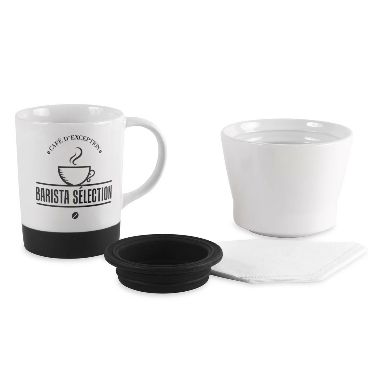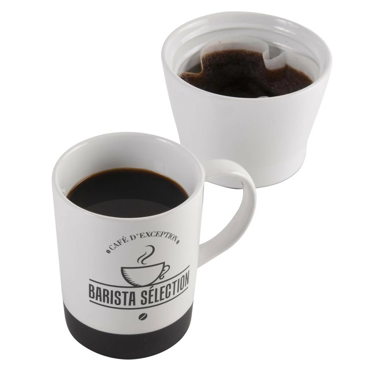 - mug accompagné de son support de filtres à café à poser directement pour un café minute !