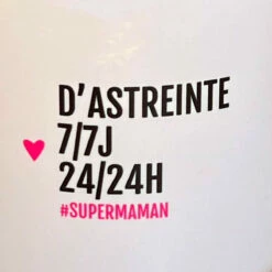Maman multitâche, ce mug est pour vous ! Parce vous n’ĂŞtes pas qu’une maman ! Ă la fois infirmière, taxi, psychologue, coach, cuisinière, et bien plus encore, vous ĂŞtes en charge du bien-ĂŞtre et de l’Ă©panouissement de toute votre famille de jour comme de nuit ! Vous gĂ©rez les petits bobos, les caprices, les devoirs, les repas et les câlins comme une pro ? Alors oui, vous ĂŞtes officiellement d’astreinte 24h/24 et 7j/7 ! Vous mĂ©ritez votre (et bien plus encore!). Un design unique et drĂ´le pour les mamans extraordinaires, ce mug en cĂ©ramique de qualitĂ© arbore fièrement l’inscription « D’Astreinte 7/7J 24/24H » #supermaman, affichant ainsi votre disponibilitĂ© sans limite et votre dĂ©vouement Ă votre famille. Vous avez la chance d’avoir une supermaman ? faites preuve de gratitude et offrez-lui cette tasse originale et amusante, c’est le minimum que vous puissiez faire !
