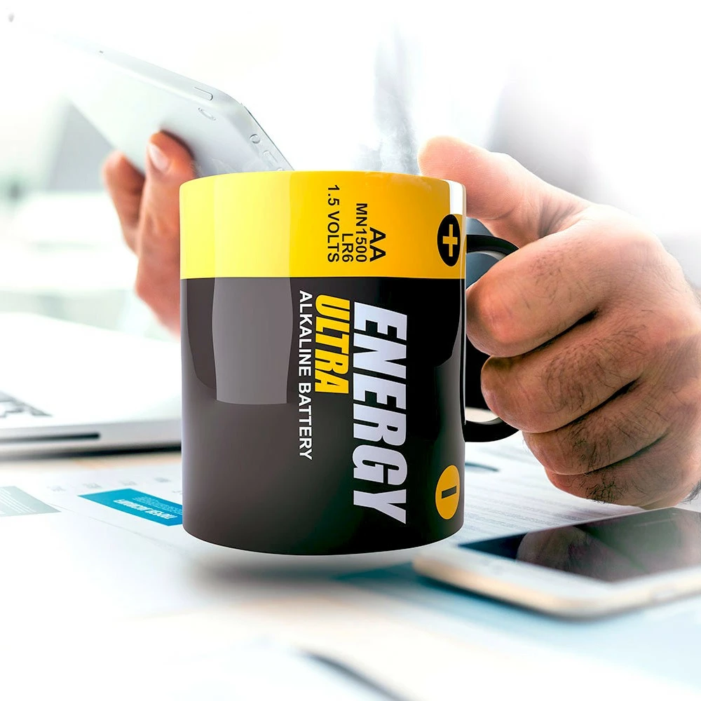 Le est une avec un design directement inspiré d’une grosse pile. Un café ou un thé à boire dans cette tasse et c’est reparti pour un tour ! Le mug Energy peut passer indifféremment au four à micro-ondes et au lave-vaisselle, sa contenance de 30 cl vous permettra de vous offrir les cafés les plus corsés ou les thés les plus chargés en théine et de repartir au galop vers vos activités ! un mug qu’on a plaisir à utiliser à la ou chez soi au petit-déjeuner pour affronter une longue et épuisante journée.