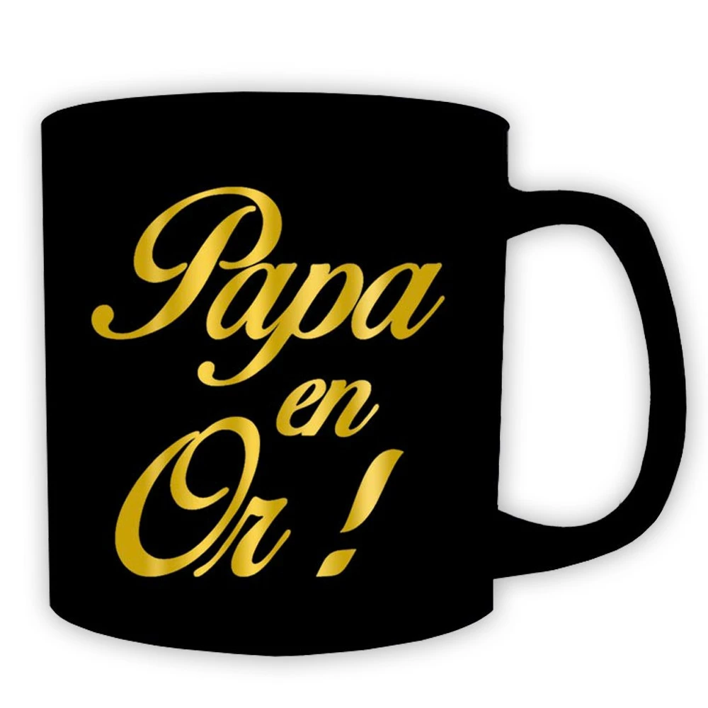 Le offre une contenance d’environ 50 cl ! D’un noir profond et recouvert d’une magnifique inscription dorée effet or qui le met en valeur, le Mug géant Papa en Or comblera de bonheur votre papa et lui permettra de se maintenir hydraté en toutes circonstances… en pensant à vous. !