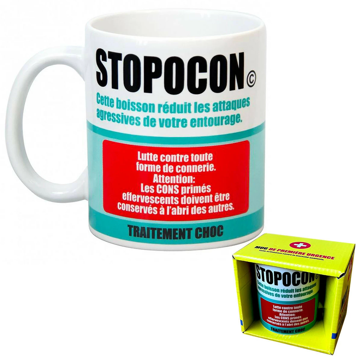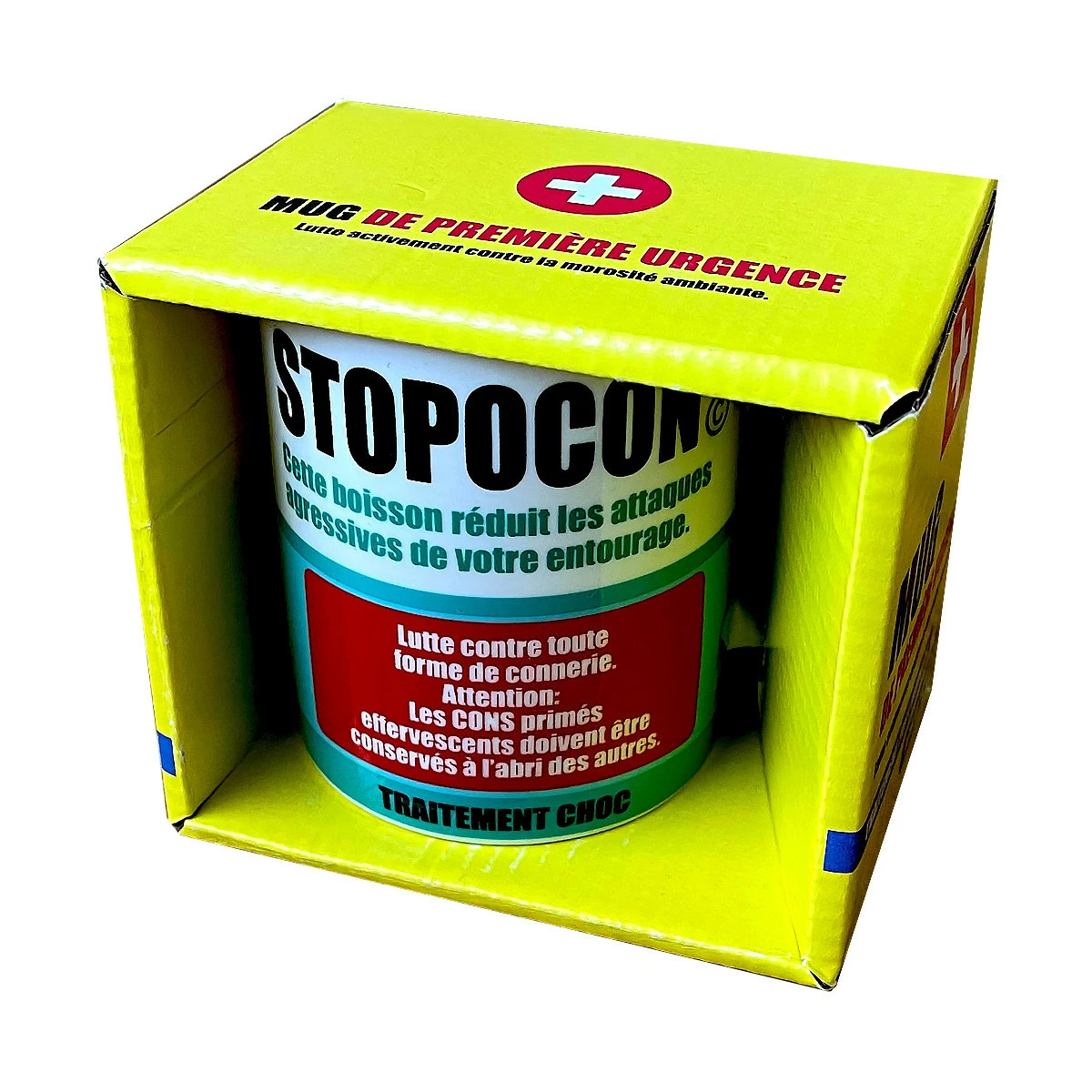 Le est une tasse de première urgence qui vous permet de réduire considérablement les attaques agressives de votre entourage. Les cons sont partout ! au boulot, comme ailleurs ! Une consommation régulière de votre boisson préférée dans ce mug original vous garantira une immunité permanente contre la connerie ambiante. Cette tasse humoristique, le est le cadeau idéal à offrir à un collègue ou un ami qui se plaint régulièrement de l’atmosphère dégagée par son entourage.