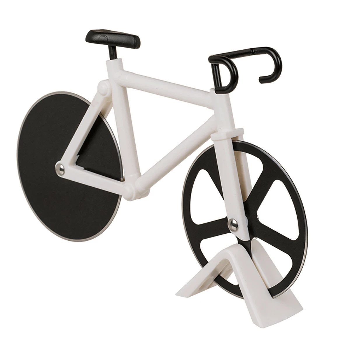 Rien de tel que de manger une bonne pizza avec vos amis ! vous aurez tout loisir de l’éliminer par la suite avec quelques coups de pédales. Pour la découpe de la pizza, le est un ustensile hors norme pour couper deux fois plus vite votre pizza (eh oui, sur un vélo il y a deux roues et donc deux roulettes pour découper !). La roue avant avec ses rayons évite les adhérences des ingrédients, et la roue arrière tranche parfaitement la pâte. Quel plaisir de pédaler dans la mozzarella et les pepperonis !