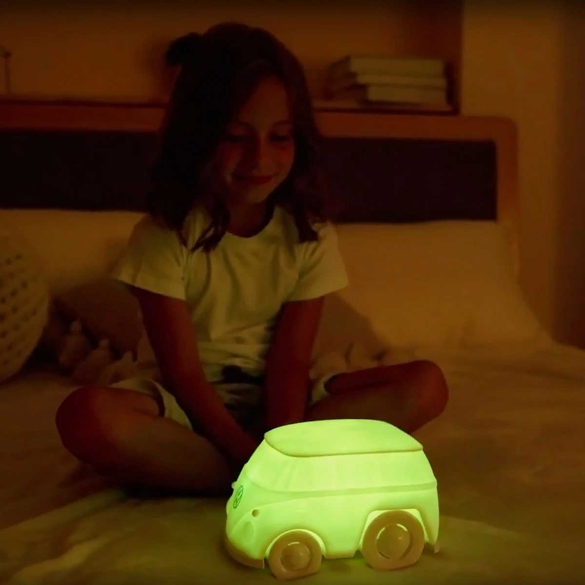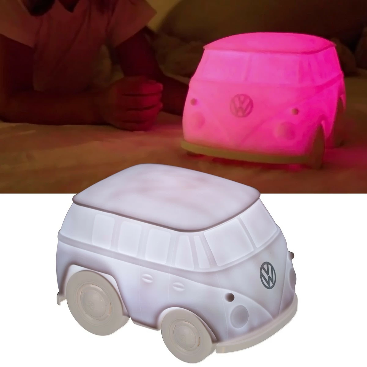 Directement inspirĂ©e du , la est une superbe rĂ©plique de ce monument de l’Automobile. FabriquĂ©e sous licence officielle Volkswagen, cette lampe dĂ©corative insolite au style caricatural est saisissante de dĂ©tails et les connaisseurs l’adoreront ! Totalement libre, cette lampe originale fonctionne sur piles, les roues sont fonctionnelles et lui permettent de rouler. Pressez une fois le toit du Combi et voici que ! Les couleurs dĂ©filent paisiblement en passant par des nuances de bleu, vert, rouge, rose, violet, orange et blanc. Une couleur vous plait plus que les autres ? Pressez Ă nouveau le toit du mini bus VW et . Pressez une nouvelle fois et la lampe s’Ă©teindra. Sur la table de chevet de votre enfant, la Lampe veilleuse combi VW s’Ă©teindra automatiquement après une pĂ©riode de trente minutes afin d’Ă©conomiser les piles grâce Ă sa temporisation intĂ©grĂ©e. Ce joli van est en lui-mĂŞme dĂ©jĂ très agrĂ©able Ă regarder lorsqu’il est Ă©teint, on dirait , mais c’est vraiment lorsqu’il s’illumine que cet objet prend toute sa dimension. Un cadeau sublime  et du symbole qu’il reprĂ©sente.