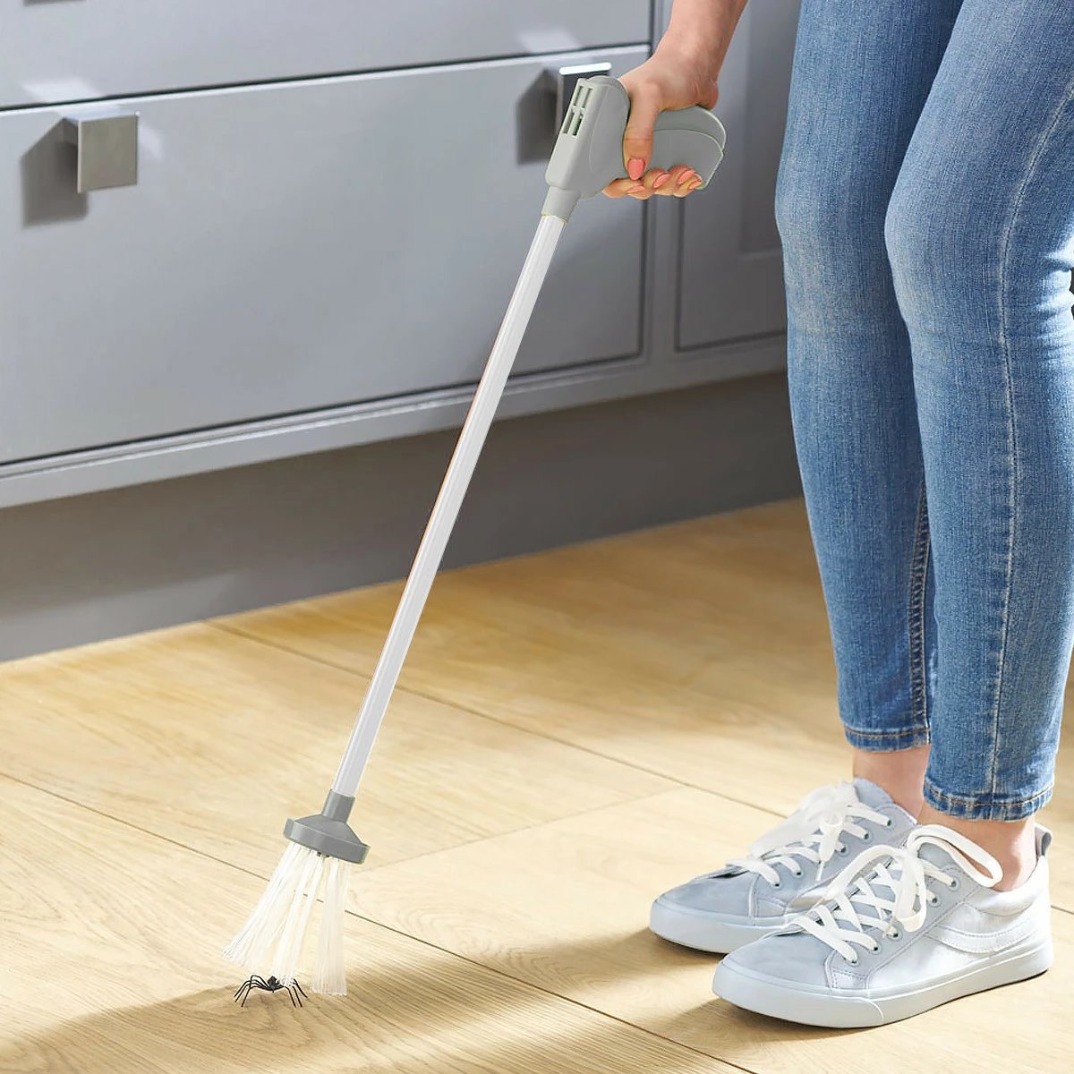 D’une longueur de 65 cm, le vous permet de rester à une distance suffisante de sécurité de l’araignée (certaines ont des dents très pointues !). Il vous permet surtout d’ d’une seule main et sans tabouret sagement installée dans un coin de votre plafond. L’utilisation est simple : appuyez sur la poignée, les poils de soie s’ouvrent, relâchez rapidement la poignée et vous emprisonnez alors l’insecte indésirable. Vous pouvez alors relâcher cette pauvre araignée dans un milieu beaucoup plus naturel !