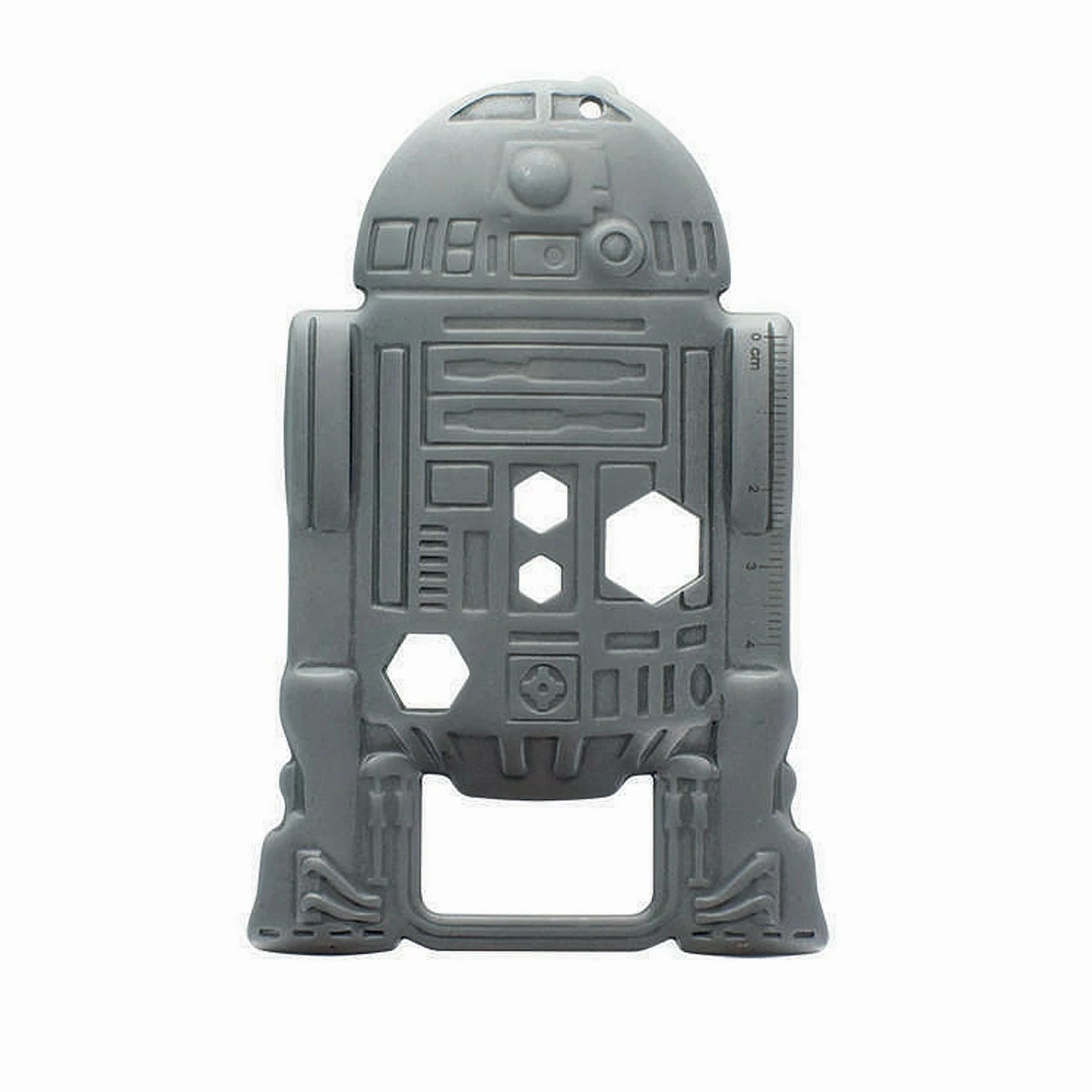 Ce bel objet en métal reprend les formes et la silhouette de R2D2 et est presqu’aussi utile que le vrai pour vous aider à sortir des situations compliquées. Le comprend en effet une pléiade d’outils de dépannage dont le plus important est certainement le décapsuleur. D’autres fonctions pratiques comme une règle, une série de clés hexagonales, deux encoches pour enrouler par exemple le câble de vos écouteurs ou un trou pour devenir un porte-clés complètent cet objet collector. Un joli cadeau utile sous licence officielle pour tous les .