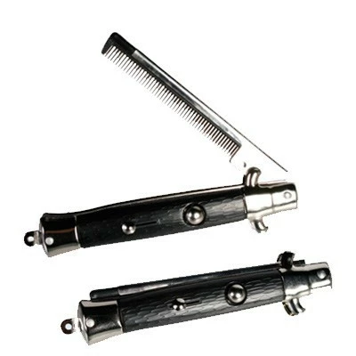 Votre fiston refuse de se coiffer ? offrez-lui un peigne cran d’arrêt ! Le peigne cran d’arrêt est comme son nom l’indique, un peigne et s’éjecte de la même manière qu’un couteau à cran d’arrêt.