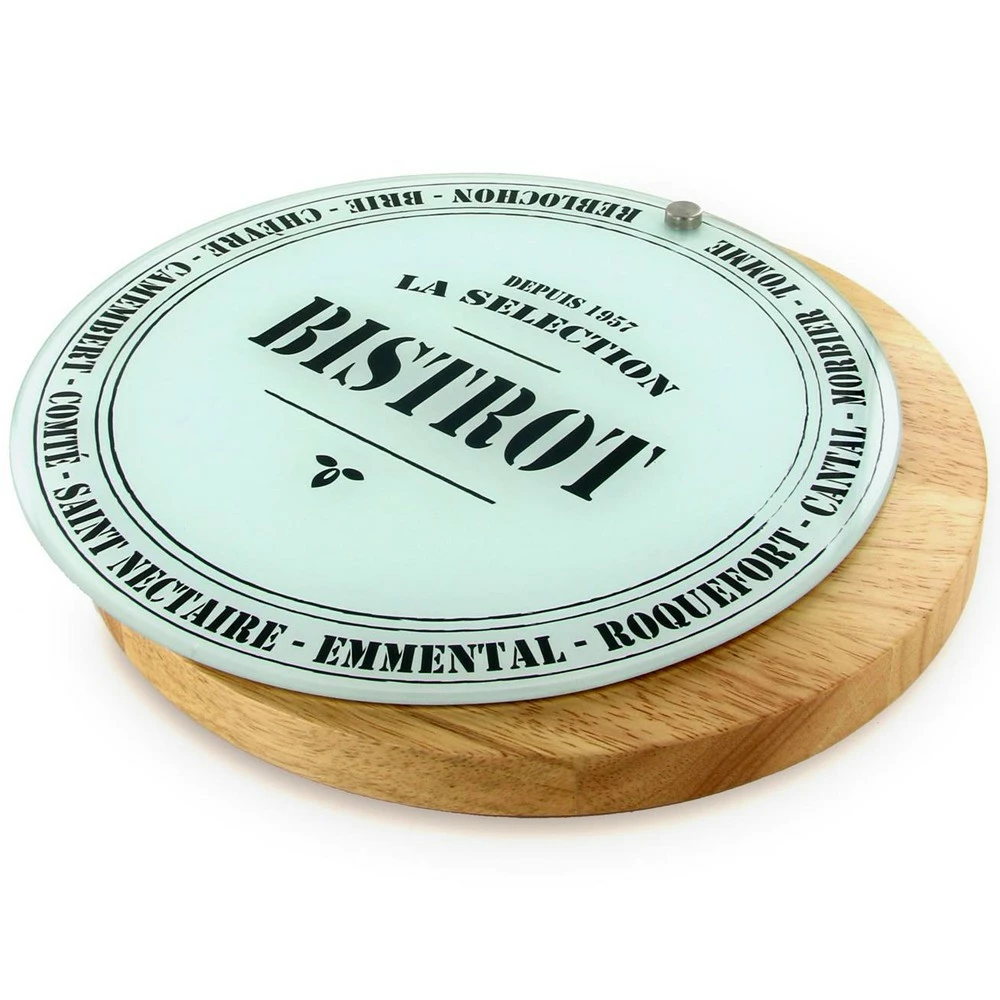 Servez vos fromages sur un . Ce plateau à fromage est très astucieux : il est équipé d’une plaque rotative en verre qui dissimule une cachette dans le socle en bois où sont rangés pour couper et trancher facilement tout type de fromage. Un couteau pointu pour les pâtes dures comme le parmesan, une fourchette à fromage pour maintenir pendant la coupe et une hachette pour les fromages à pâte dure. Un pour la table.