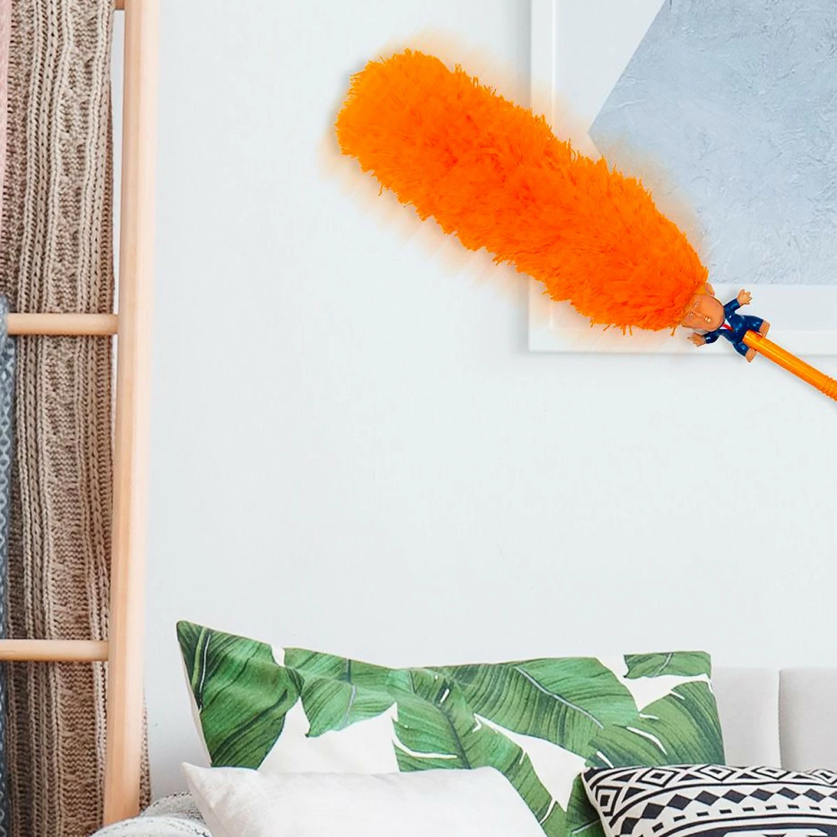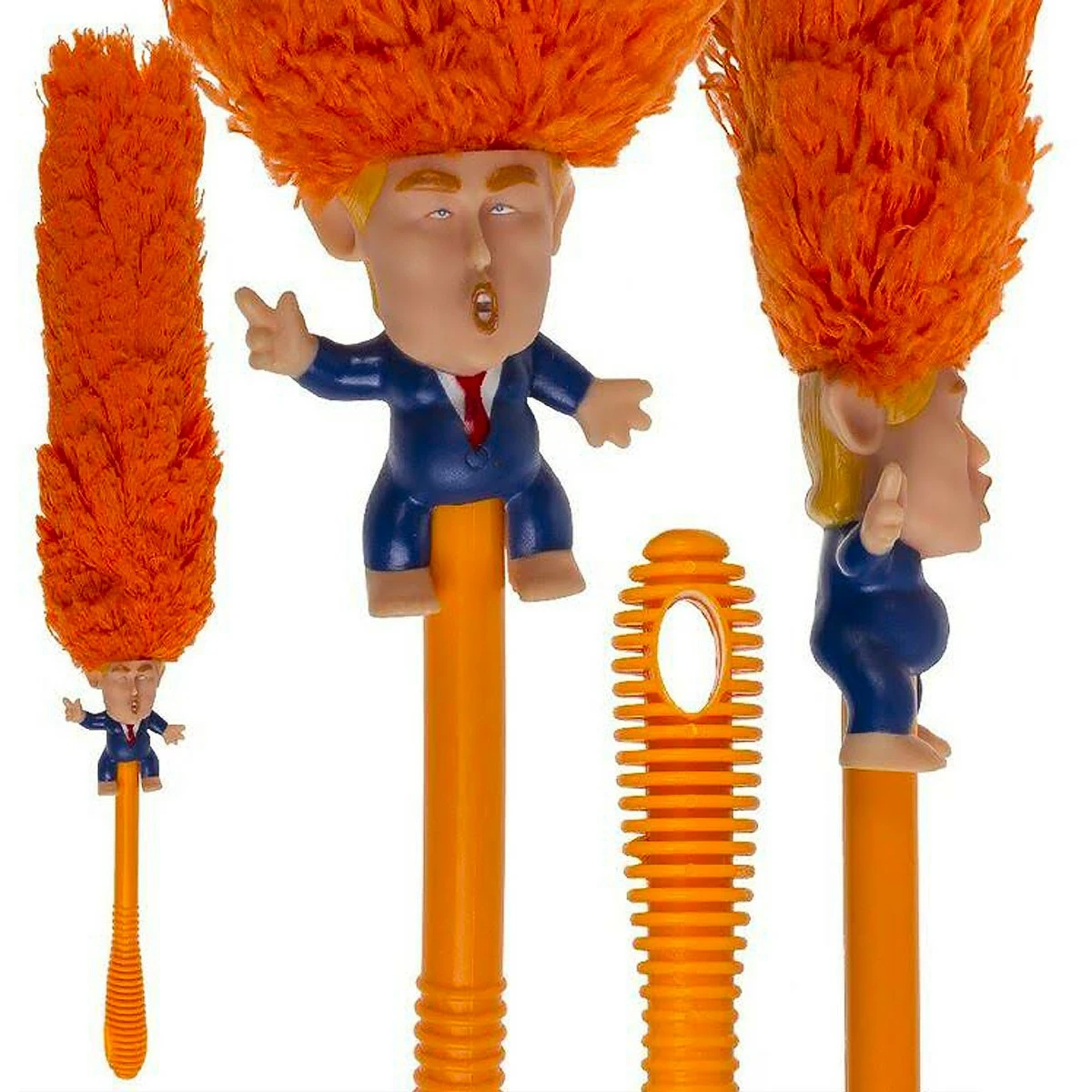 Arborant fièrement son atout capillaire orange vif, le est redoutable pour dénicher la moindre poussière ou saleté dans votre logement. Saisissez le Président par le manche (façon de parler…) et utilisez sa « moumoute » statique un peu partout sur votre mobilier pour éradiquer toute vermine indésirable sur votre territoire. Le est flexible, ce qui vous permet d’accéder à tous les recoins facilement. Un seul regard à l’expression hystérique du petit gugusse en plastique devrait vous remplir de satisfaction à l’idée de lui salir les cheveux… Le est un cadeau utile et agréable, ne vous en privez pas.