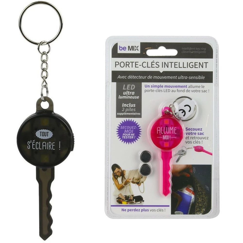 Monsieur est particulièrement ravi de profiter du sac à main de Madame car cela lui permet de se délester d’un « lourd » fardeau (un trousseau de clés par exemple) lors des promenades en famille en le confiant aux bons soins de Madame. Le problème survient quand on veut retrouver rapidement le fameux trousseau de clés qui, entre temps, aura glissé au fin fond du sac à main, sous les papiers (une véritable administration mobile), les maquillages (de quoi faire un soin du corps complet + ravalement de façade), un petit encas (le minimum vital pour tenir deux jours…), une trousse de secours (pour les randonnées shopping), la monnaie ou autres cartes bancaires sans parler des soixante cartes de fidélité… Pour éviter les tensions avec Monsieur (dont la patience est inexistante), utilisez le ! cet porte-clés est équipé d’un détecteur de mouvement et de deux leds puissantes. Résultat : vous secouez légèrement votre sac à main et le trousseau de clés se mettra à flasher ! vous pourrez ainsi le retrouver instantanément parmi les objets qui se trouvent dans le sac. Astucieux non ?