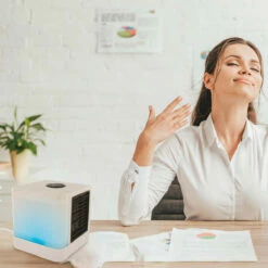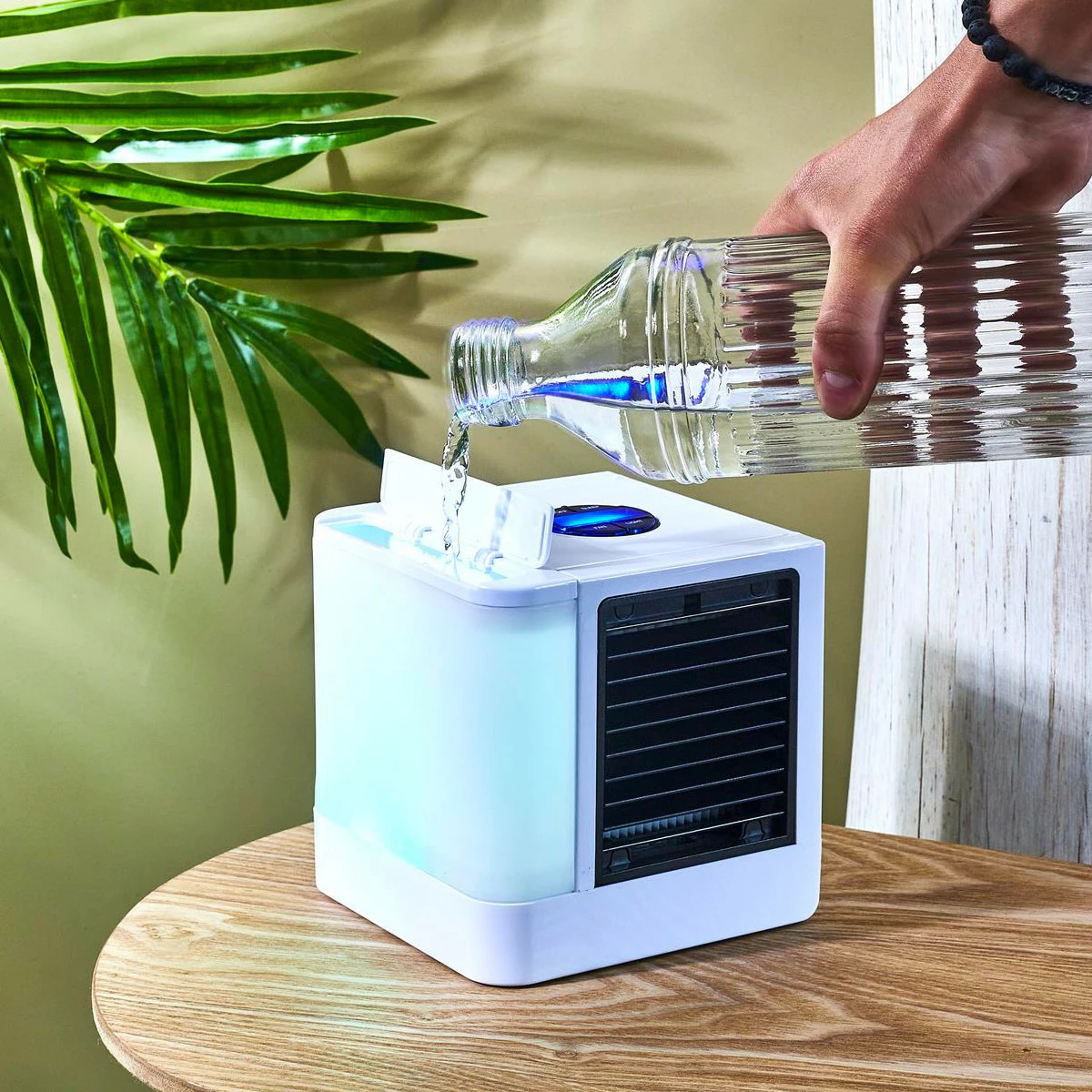 Compact, il est facile à emporter à l’endroit ou vous en aurez besoin : au bureau, dans votre chambre ou celle de votre enfant, au salon, dans votre camping-car… Le est à la fois un mini conditionneur d’air et une lampe d’ambiance. Branchez-le simplement sur le port USB de votre ordinateur ou le chargeur de votre smartphone, remplissez le réservoir avec de l’eau et bénéficiez d’un rafraîchissement d’humidification de l’air ambiant de la pièce dans laquelle vous l’aurez activé. Vous pouvez aussi ajouter des glaçons pour augmenter le rafraîchissement et ajouter quelques gouttes d’huile essentielle pour parfumer l’atmosphère. La partie réservoir est illuminée par des . L’éclairage passe progressivement par sept teintes différentes et vous pouvez également le figer sur votre couleur préférée. Une bénédiction par temps de canicule !