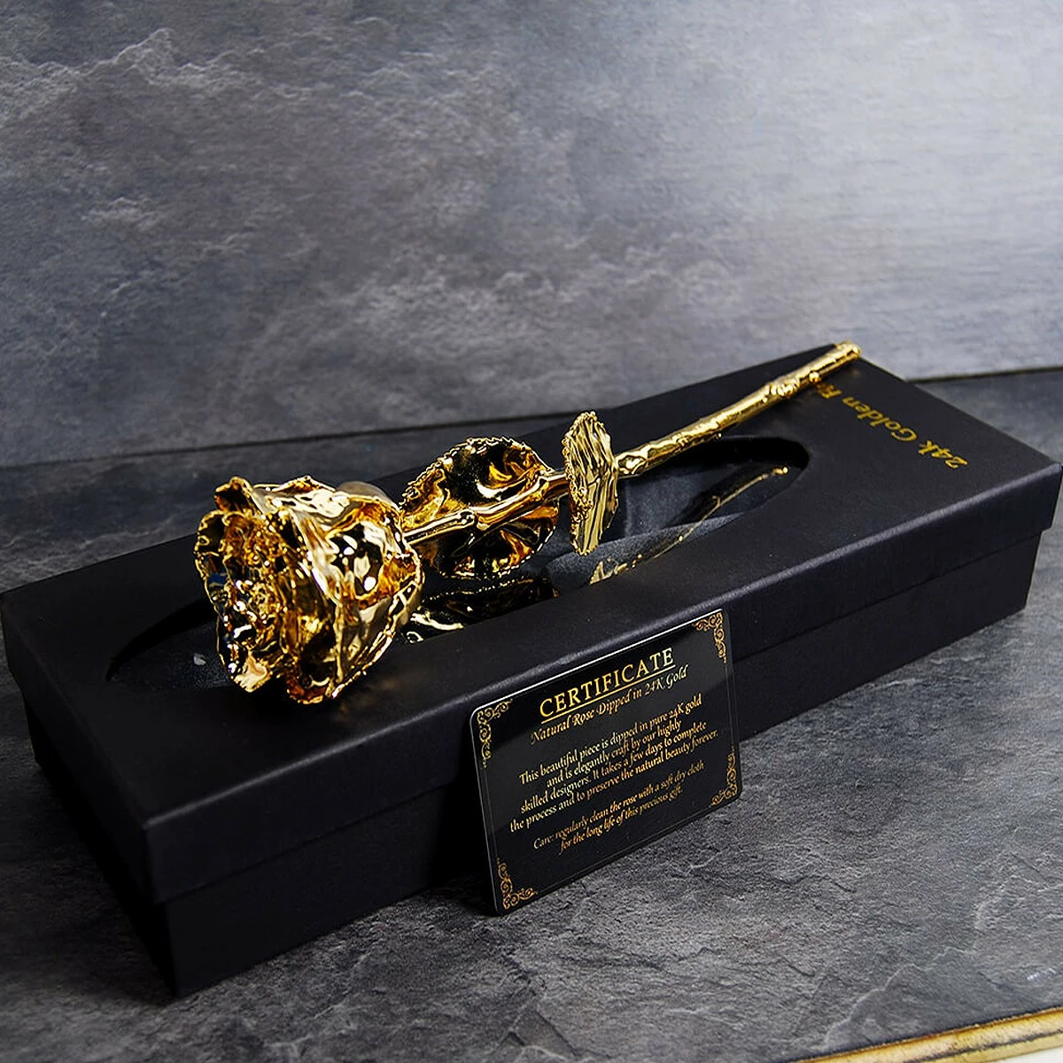 - véritable rose enduite d’or 24 carats,