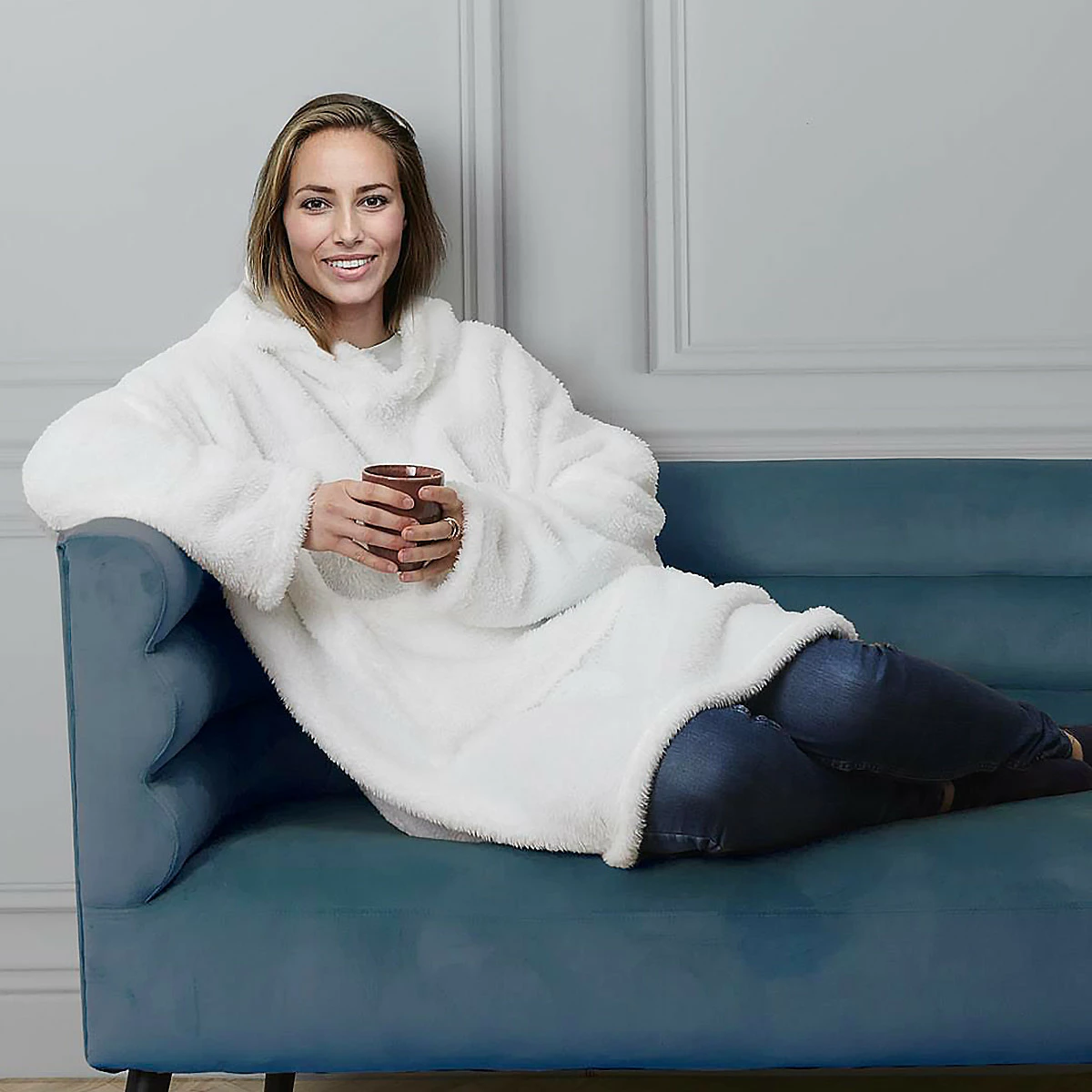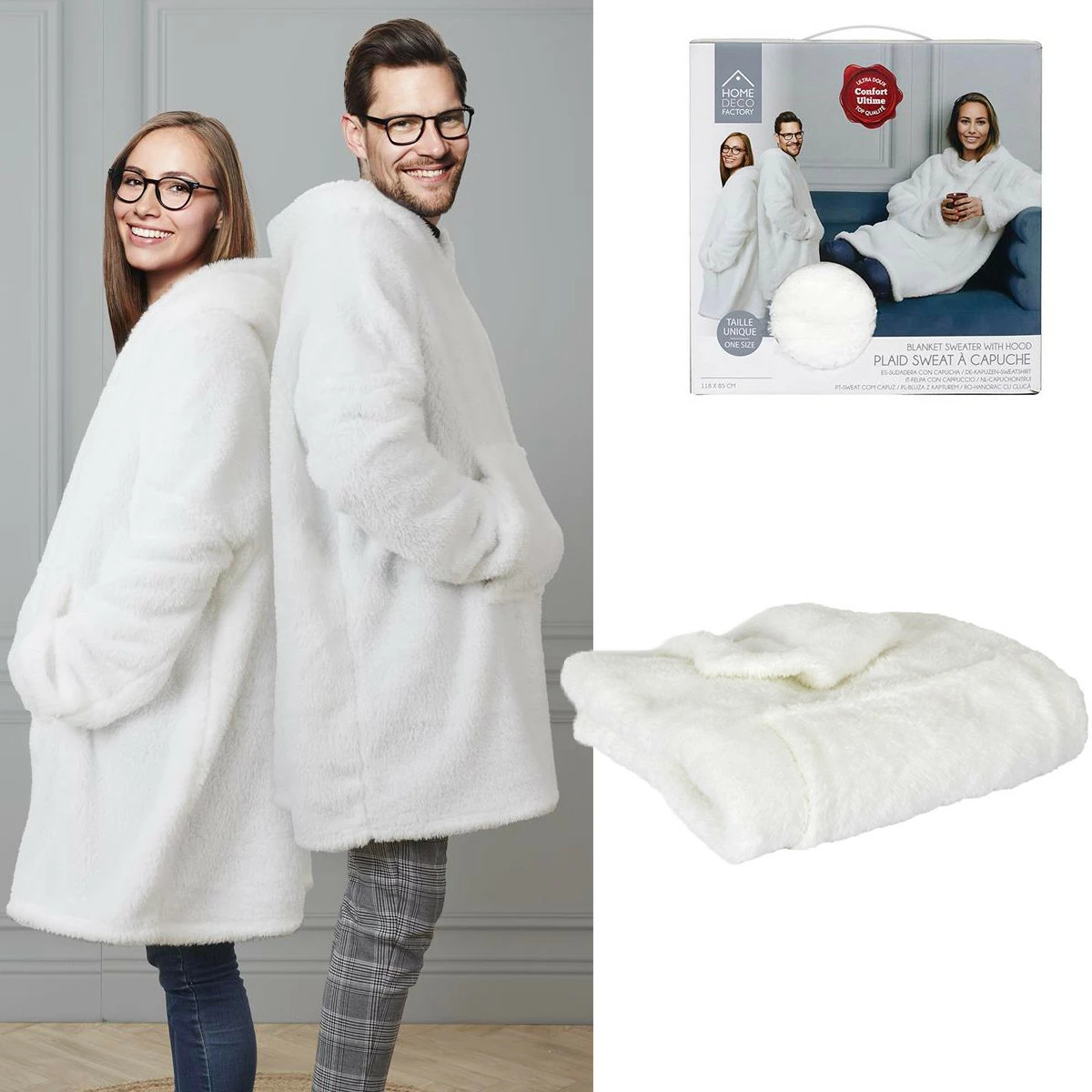 Avec le , vous allez pouvoir vous blottir dans ce cocon de chaleur et de douceur qui enveloppera tout le haut votre corps dans un écrin de réconfort. Depuis maintenant plusieurs années que nous proposons des couvertures à manches, le bat tous les records en terme de bien-être ! Ce subtil mariage entre une couverture polaire et un sweat-shirt à capuche est très probablement le plus abouti et le plus confortable dans le domaine des cadeau dédiés au cocooning.