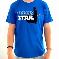 Le  reprĂ©sente en effet le logo Star Wars dĂ©tournĂ© en « Porn Star ». En arrière-plan, on aperçoit la silhouette du lĂ©gendaire Dark Vador dont le sabre laser pointe vers le ciel d’une manière tout Ă fait logique avec le terme « Porn Star ». 100% coton et de couleur bleue ce t-shirt insolite et amusant fera le bonheur des passionnĂ©s de Star Wars ravis d’arborer leur cĂ´tĂ© obscur.